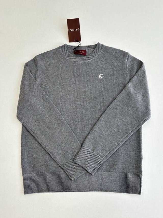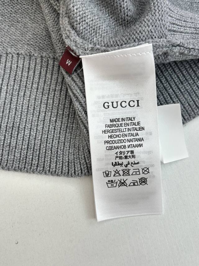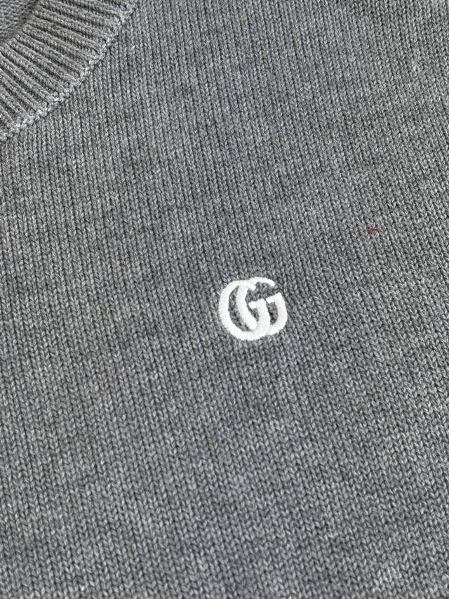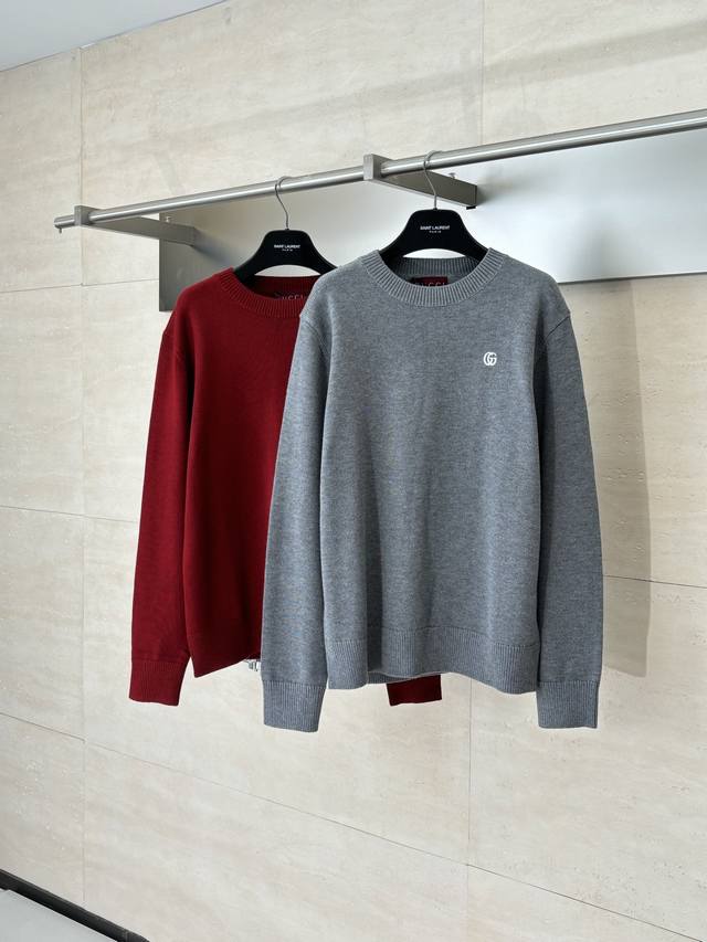 Gucc* Gucci Fall/Winter 2025 New Double G Logo Embroidered Pullover Knit Crew Neck Sweater DDD. The fabric is made of high-count Merino wool yarn, which is combed to remove impurities and then woven on a 12-needle circular knitting machine to create a waffle texture. The texture is evenly textured and soft to the touch. The yarn is pre-dyed and color-fixed to ensure a rich red tone that is not easily faded. The neckline, cuffs, and hem feature ribbed edges with a 1*1 elastic structure, treated with a high-temperature setting process for excellent resilience and resistance to sagging and deformation. The double G logo on the left chest is hand-embroidered using fine yarn in the same color family and a flat embroidery stitch, resulting in fine, even stitches and a precise, symmetrical logo outline. The seams of the garment are seamlessly integrated using a concealed welt technique, resulting in smooth, bulging seams. The shoulders feature a 3D, ergonomic cut, and each piece is laser-cut to ensure a size error within 0.3cm. The entire sewing process undergoes multiple quality control checks, adhering to the brand's stringent standards from yarn weaving to finished product shaping, resulting in a knitted garment that combines quality and comfort. The stitching is straight and delicate, the fabric is soft and comfortable, and the color is consistent with no color difference. Sizes: S, M, L, XL