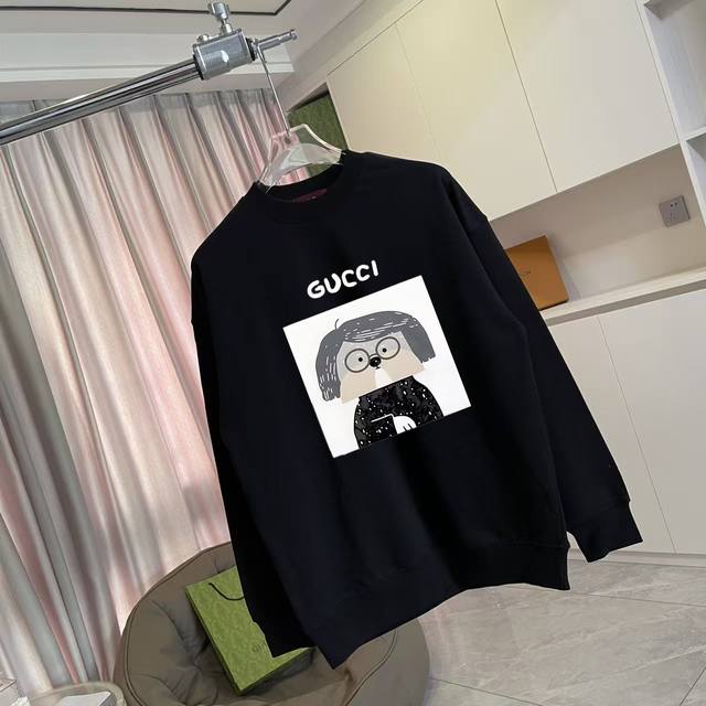 Gucc*2025 Autumn/Winter New Style Personalized Letter Logo Print Custom Fabric 400G Crew Neck Sweatshirt Unisex