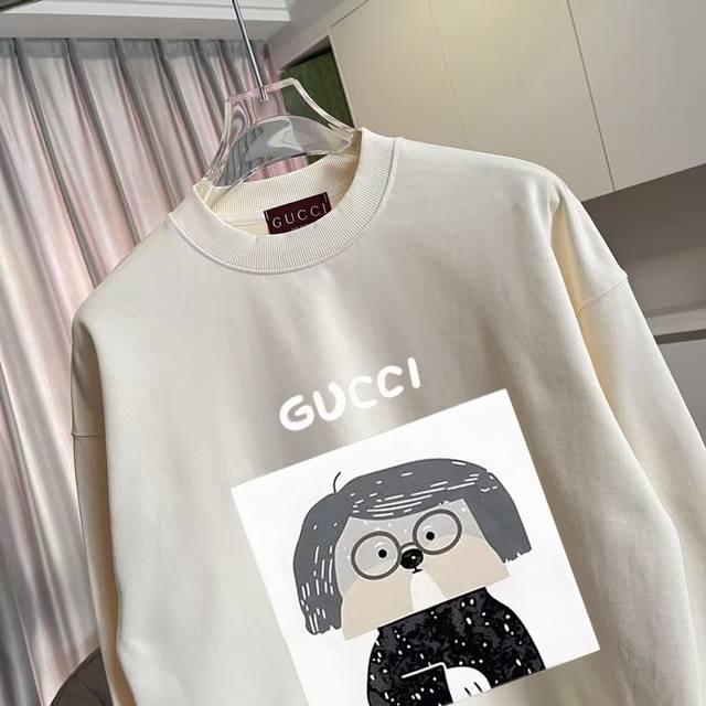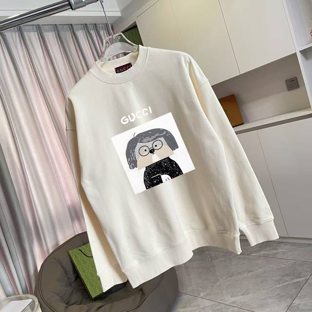 Gucc*2025 Autumn/Winter New Style Personalized Letter Logo Print Custom Fabric 400G Crew Neck Sweatshirt Unisex