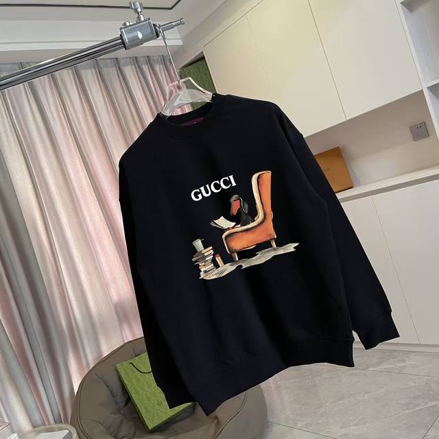 Gucc*2025 Autumn/Winter New Style Personalized Letter Logo Print Custom Fabric 400G Crew Neck Sweatshirt Unisex
