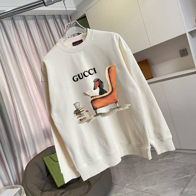 Gucc*2025 Autumn/Winter New Style Personalized Letter Logo Print Custom Fabric 400G Crew Neck Sweatshirt Unisex