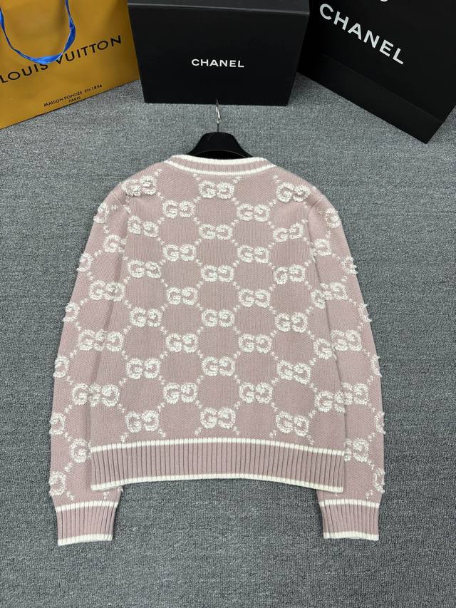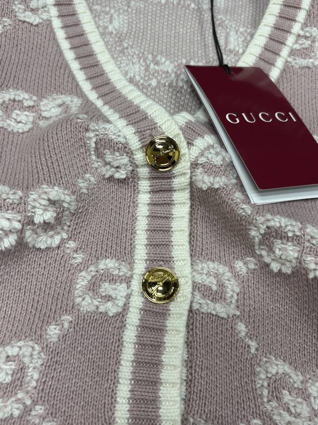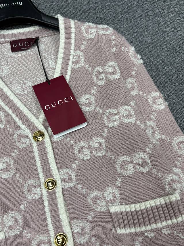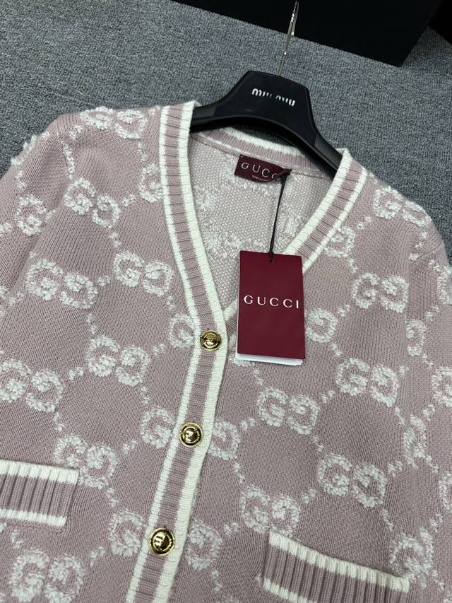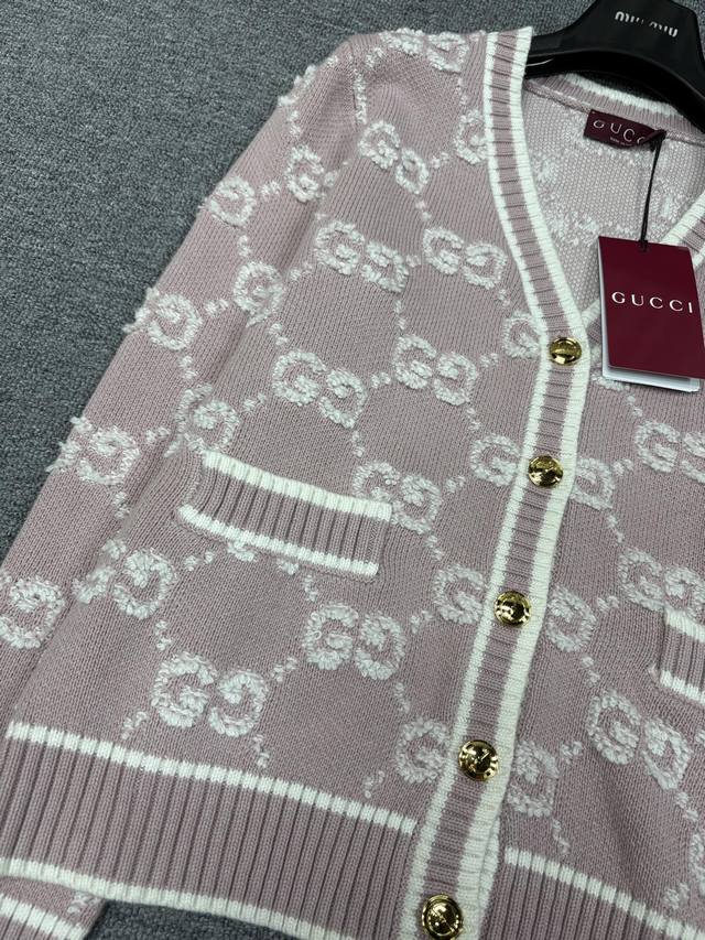 Gucc*25 Autumn/Winter New Knitted V-Neck Cardigan, Classic Brand, Double G Diamond Jacquard Decoration, Yb Mold Opening, Double G Hardware Buttons, High-End Fashionable Elegant Style, Sizes Sml