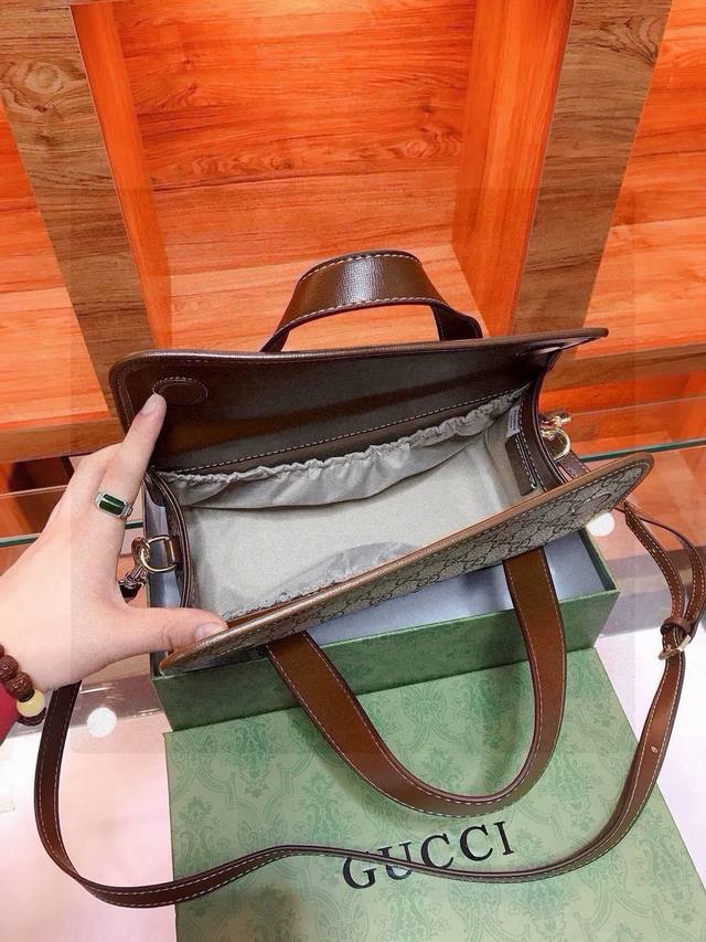 Gucci 1955 Horsebit Box Bag: Retro, Classic, and Elegant. The Gucci 1955 Horsebit collection introduces a new Boston bag for early fall. The bag features the brand's signature Gg monogram and is trimmed with brown leather. Drawing inspiration from archival designs, the collection inherits design details first used on the first model over 60 years ago, while infusing them with modern flair to highlight the unique allure of the Horsebit. A Gucci symbol of heritage, the Horsebit motif, composed of double rings and elongated strips, draws inspiration from the origins of equestrianism and has become a striking signature element of the brand. The brown textured leather exudes undeniable elegance, while the cotton and linen lining and gold Horsebit design, along with the classic Gucci monogram, create a bag with an elegant and vintage design that will never go out of style. The capacity is just right, meeting daily needs without being too large. It's both niche and uniquely stylish. The Gucci 1955 series perfectly captures Gucci's retro style. Holding it in your hand feels like holding fashion in your hand, and it's stylish with any outfit. In this increasingly retro era, a bag like this will instantly captivate people, and paired with a coat or a tulle skirt, it's very elegant and sophisticated!