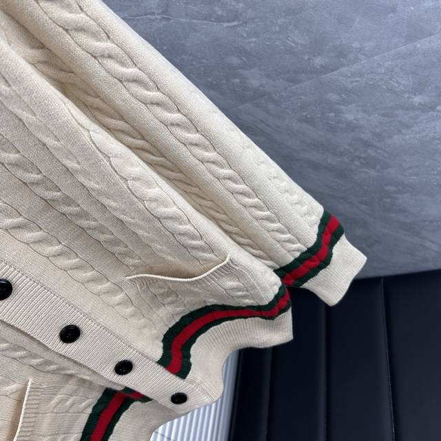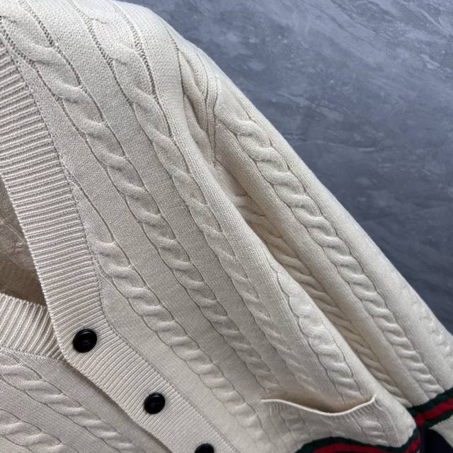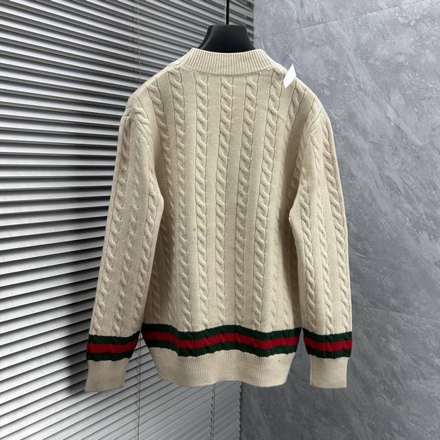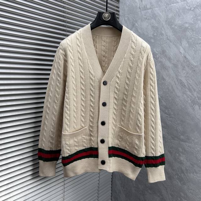 Gucci 2025 Autumn/Winter New Men's Brand High-Quality Wool Knit Cardigan, featuring the same high-end craftsmanship as the official website. It boasts a delicate and soft feel, safe to wear directly against the skin, allowing the warm yarn to create a refined texture. The simple and elegant design with a sophisticated three-dimensional cut gives the sweater a youthful and energetic look. A recommended must-have for autumn and winter. Sizes: M~3XL,
