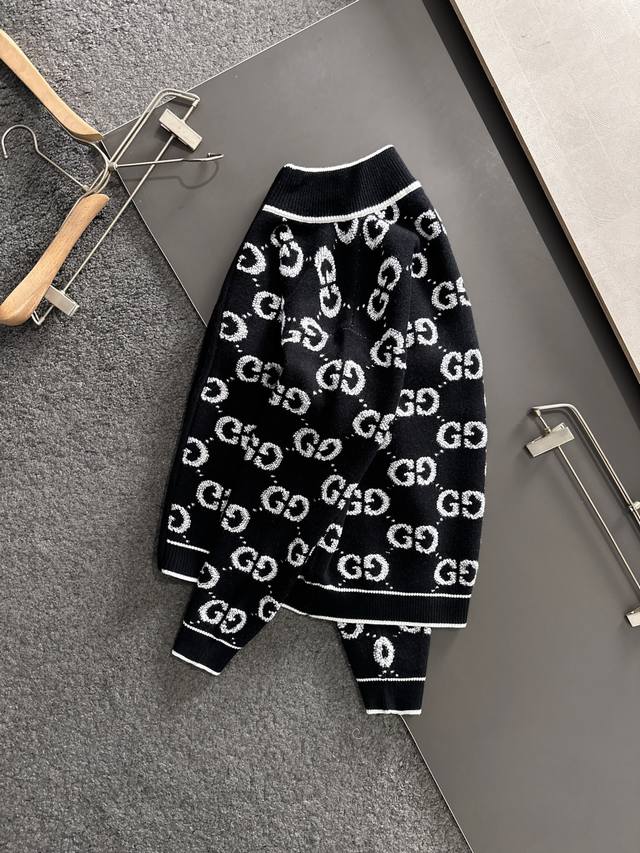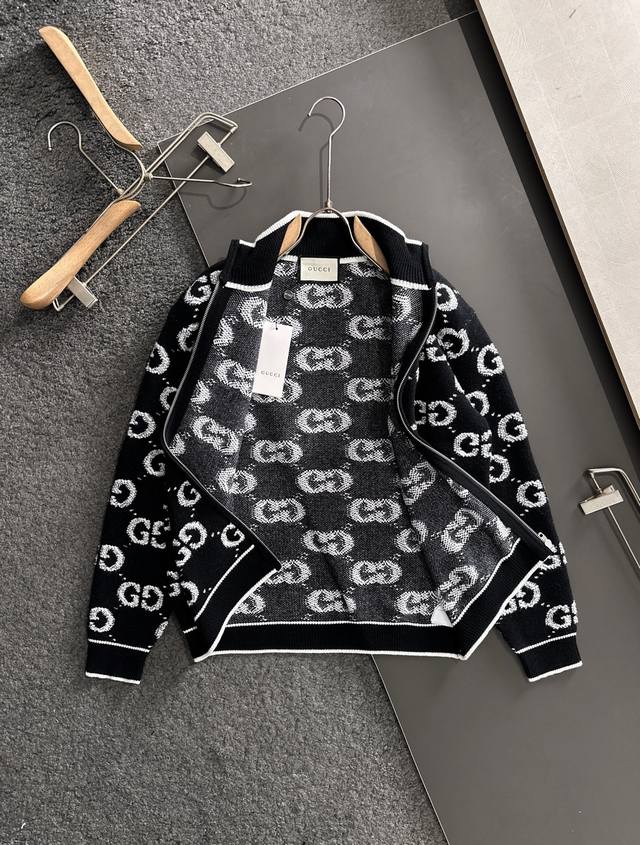 Gucci 2025 Autumn/Winter New Unisex High-Weight Knit Cardigan with Logo Stripe Design! Features a classic crochet logo stripe design! Made from 80% wool blend, the fabric is thick and substantial, with a soft and dense terry texture. It's breathable, comfortable against the skin, and boasts vibrant colors that are eye-catching and incredibly stylish. The unique pattern will definitely make you stand out from the crowd! The casual cut is youthful and versatile. Sizes M-XL DDD