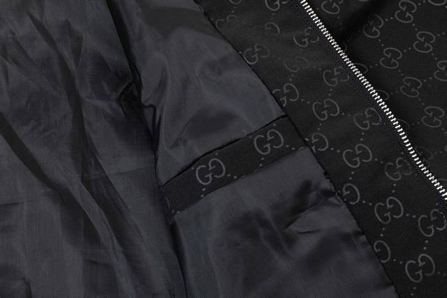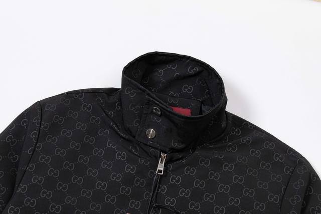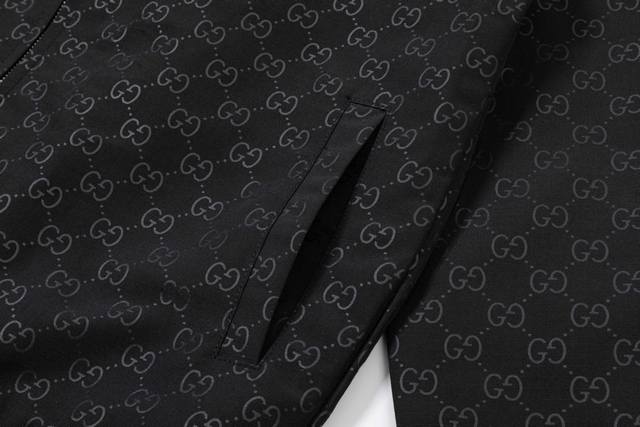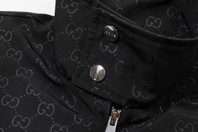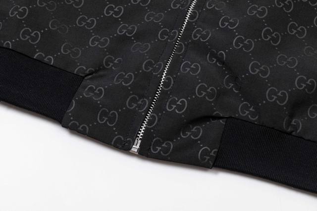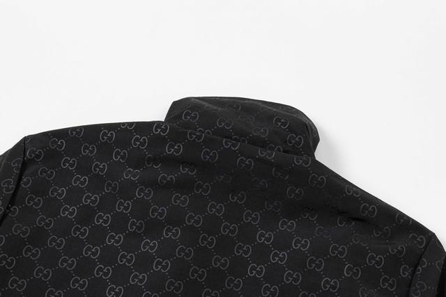 Gucci 2025 Fall/Winter New Stand Collar Jacket, Official Website Synchronized Full-body GG Embossed Design, Stylish and Elegant, Meticulous Workmanship, Neat Stitching, Excellent Fit, Original Custom-Made Hardware and Zippers. Sizes: M-3XL. Color: Black.
