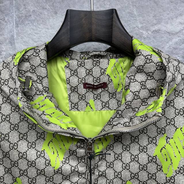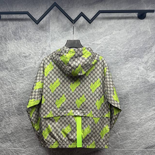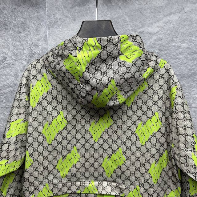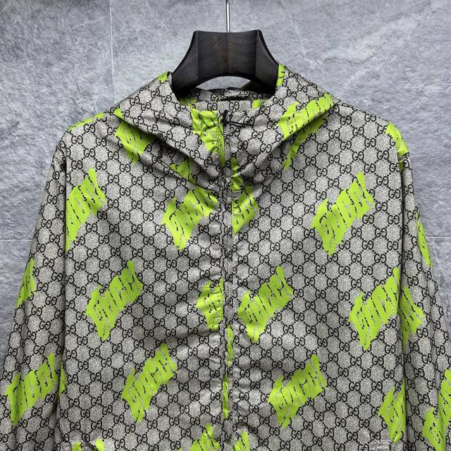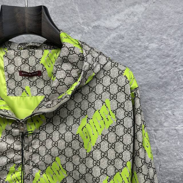 Gucci 2025 New All-over Green Letter Print Couple Hooded Jacket. High-quality, top-tier version. Made with custom polyester composite fabric for excellent breathability. Original custom hardware and lining. Pill-resistant, wear-resistant, comfortable, soft, and wrinkle-resistant. Original packaging with original washing tags. Sizes: M, 3XL. Color: All-over print.
