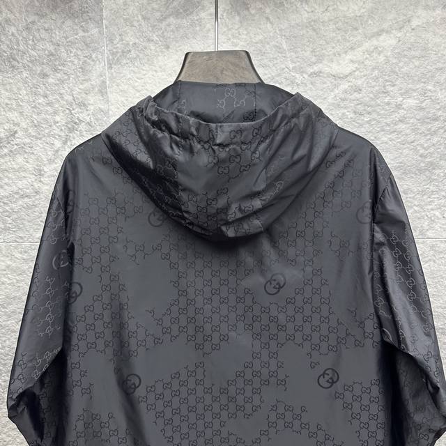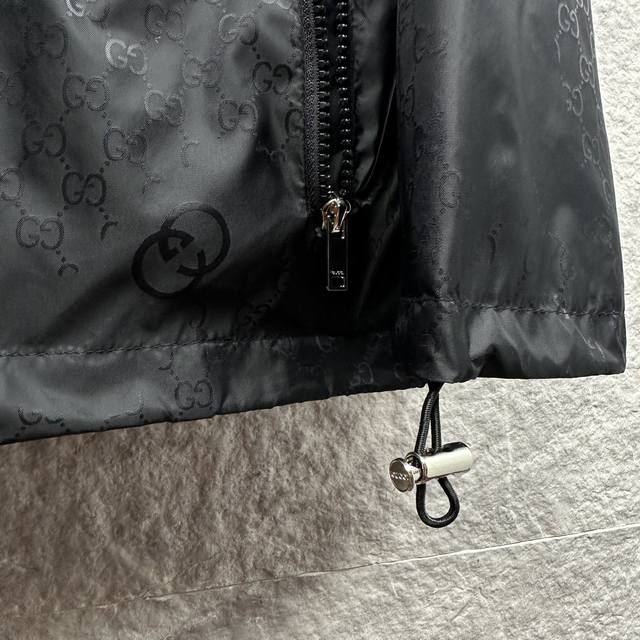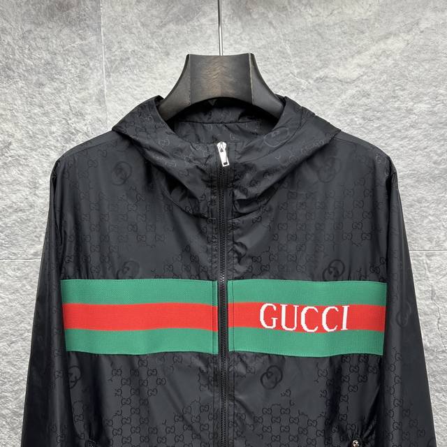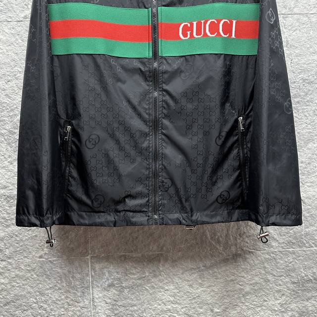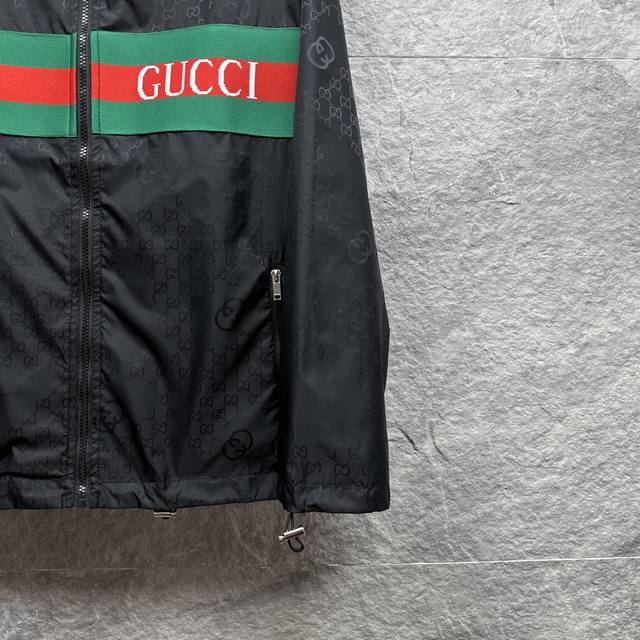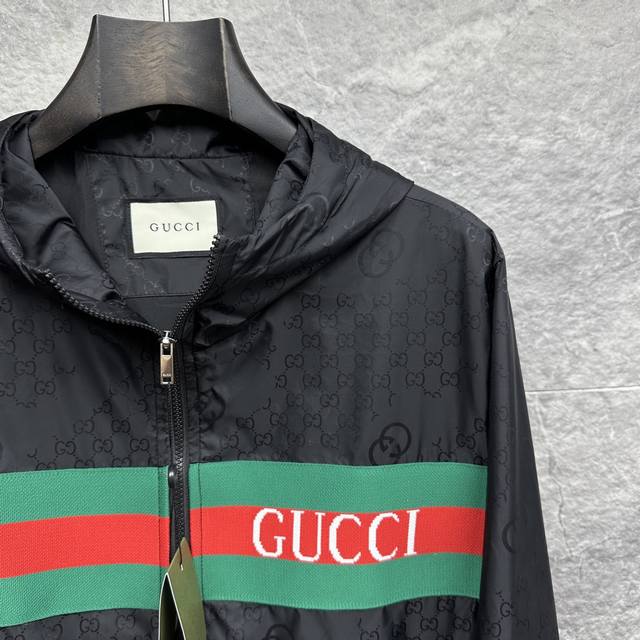 Gucci 2025 New Style Embroidered Logo Webbing Couple Hooded Jacket. High-quality, top-tier version. Made with custom polyester composite fabric for excellent breathability. Original custom hardware and lining. Pill-resistant, wear-resistant, comfortable, soft, and wrinkle-resistant. Original packaging with original washing tags. Sizes: M, 3XL. Color: Black.
