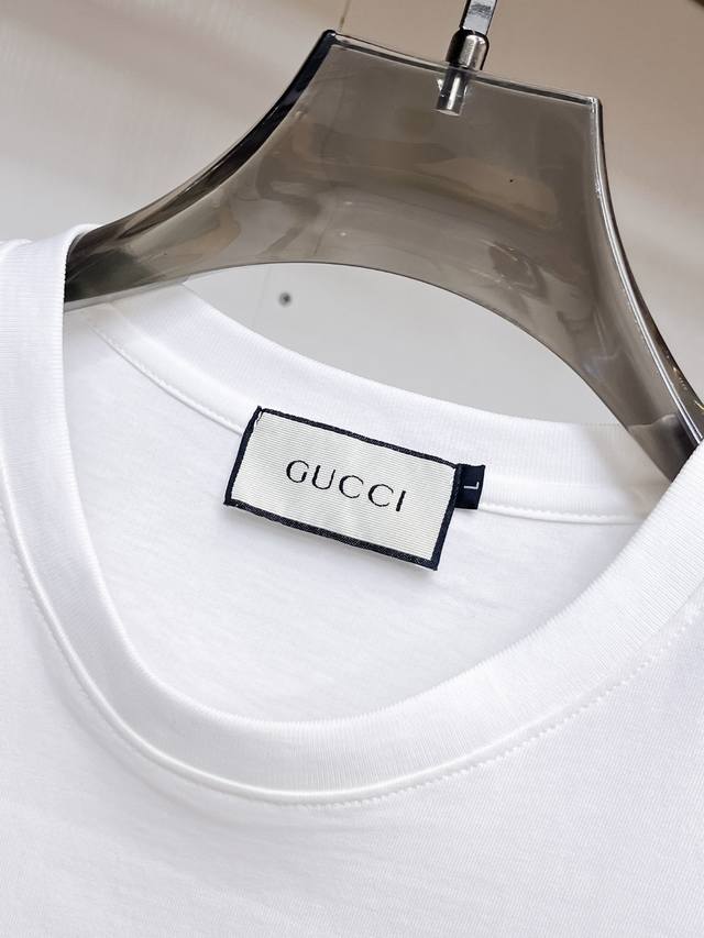 Gucci 2025 Spring and Summer New Releases, the Latest Short-sleeved Round Neck T-shirt, High-end Custom Design, Avant-garde and Fashionable! Brand Logo, Heavy Craftsmanship Design, High-end Customized Double Mercerized Fabric. Soft to the Touch. Comfortable to Wear. Exquisite Sewing at the Counter Level. Fine Workmanship. The Upper Body Effect is Invincible and Handsome! A Must-Have for Men! Good News for Fat People--