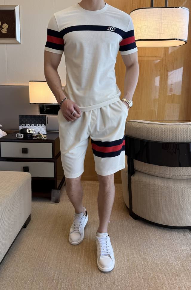 Gucci 2025 Spring/Suit New Arrival Casual Short-Sleeve Set! A celebrity favorite, this fashionable casual set is simple and elegant, featuring a 1:1 replica of the official website's design! The clean and crisp cut exudes urban style. Made with exclusive top-quality custom fabric, it's soft, smooth, and quick-drying, with a crisp and stylish silhouette. The three-dimensional tailoring ensures a high standard in the fit and a perfectly proportioned silhouette! It's just the right amount of comfortable without being too tight, making you feel great just by wearing it. Using so many top-quality materials, this high-end product offers unparalleled value. Complete with all three labels, it's the top choice for trendy fashionistas. It looks amazing on! Sizes: M-3XL