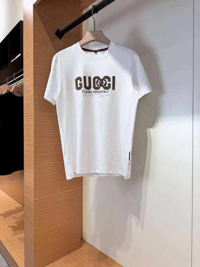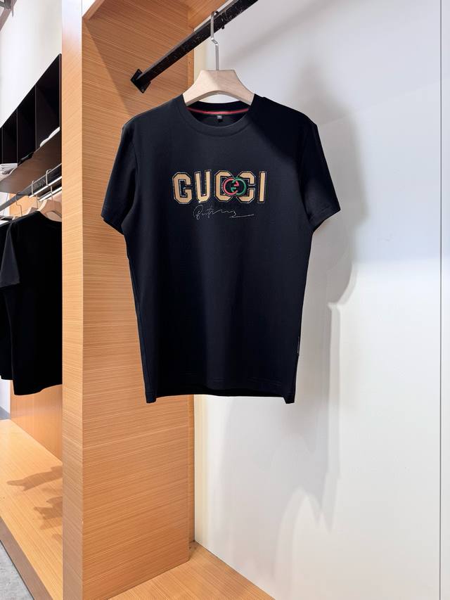 Gucci 2025 Spring/Summer Men's Crew Neck Short Sleeve T-Shirt. Ordered from a trading company, made with custom Italian combed cotton fabric, derived from natural plant fibers. Soft to the touch, comfortable to wear, and completely non-irritating to the skin. This fabric boasts excellent moisture absorption and breathability. Features a unique custom-printed letter design; the pattern is three-dimensional and exquisite, with captivating details. A truly unique design, with a three-dimensional Italian cut, it looks incredibly stylish. A high-end quality, a must-have for hardcore brand enthusiasts, giving men the most refined look. Sizes: M-3XL,