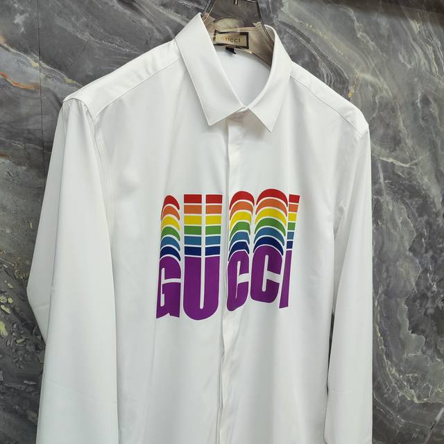 Gucci 2025 Spring/Summer new long-sleeved shirt, high-end version! Custom-made fabric from the boutique, highly breathable and comfortable, impeccable details, brand elements and design concepts, reflecting high quality. Delicate and soft to the touch! Presents a casual cut, the fit is superb! Sizes: 39-45 M-5XL. Fits up to 190 lbs. Ships the next day.
