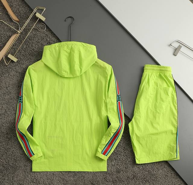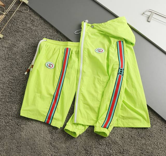 Gucci 2025 Summer Sun Protection Shirt and Shorts Set. Made with lightweight, high-quality fabric, this luxurious, high-end custom-made set is available in overseas boutiques. It's easy for anyone to wear. Made with imported polyester fabric, it's soft, comfortable, stylish, sweat-absorbent, and breathable. Ordered from a foreign trade company, produced by a top-tier domestic factory. Custom-made high-density fabric, it won't deform after washing. Luxurious and youthful, a must-have for street style and home wear. Sizes M-XXL, L fits 175cm, 140kg. Please provide your height and weight when ordering.