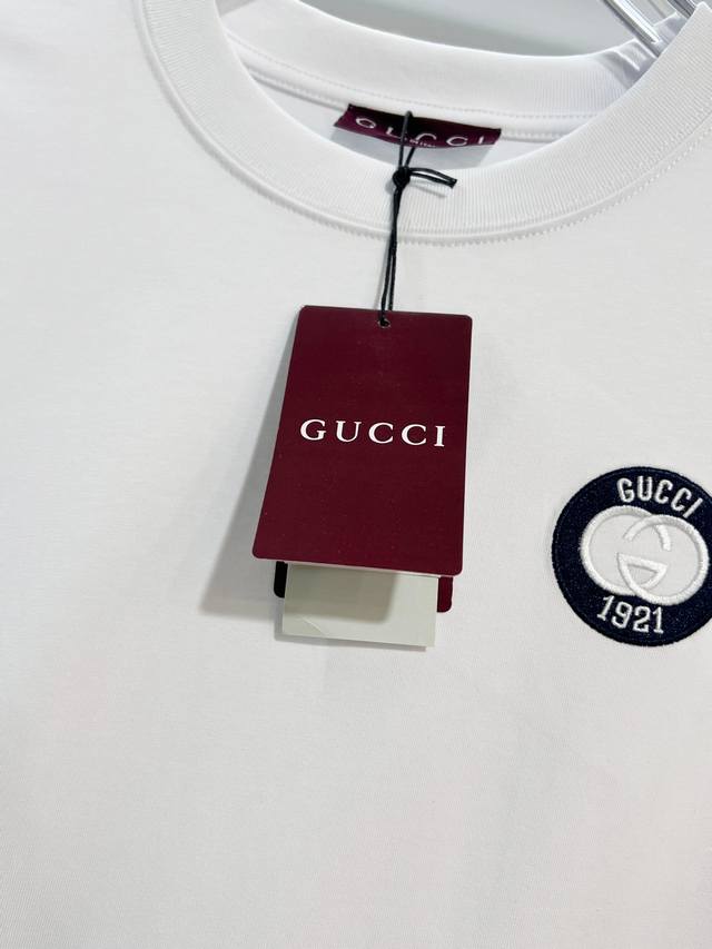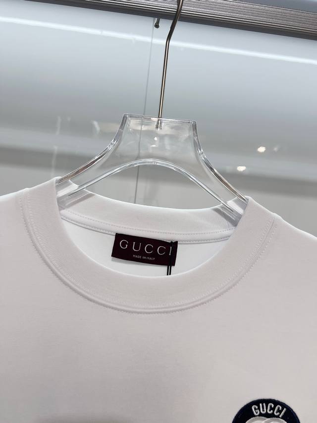 Gucci 2026 New Arrival Official Website Synchronized Double G Interlocking Embroidered Logo Unisex Short-Sleeve T-Shirt, Custom Made , 320g Weight, 100% Double Yarn Pure Cotton Fabric, Dyed 32 Count Double Thread Ribbed, Complete with Neck Label, Hang Tag, Main Label, and All Labels, Color: White, Sizes: S, M, L, XL