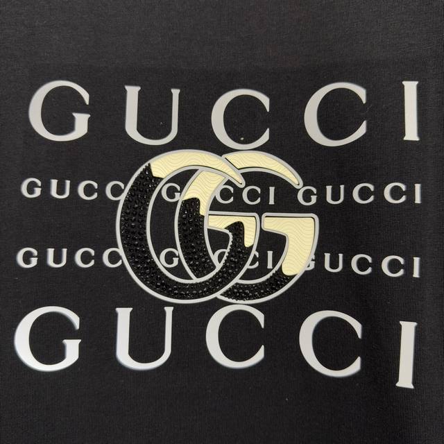Gucci 2026 Spring/Summer New Short-Sleeve T-Shirt, Heavyweight Pure Cotton, Silicone, Rhinestone Trim, Unique Style. Colors: White, Navy Blue, Pink, Black. Sizes: S, M, L, XL, XL.