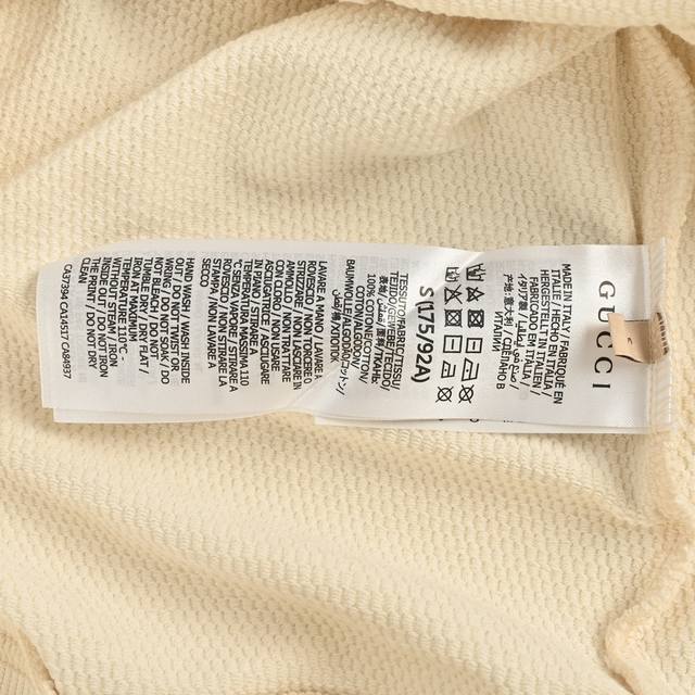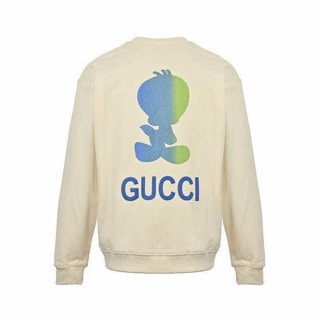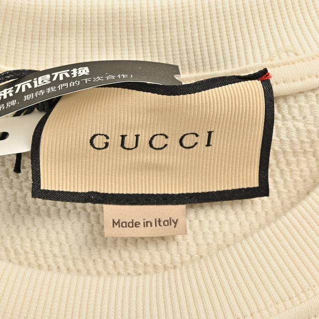 The adorable little rubber duck is here! Playful and irresistible, paired with the classic Gucci retro logo, it's stylish, luxurious, and youthful! Made from custom-made washed felt knitted cotton fabric with a micron-white hue, this signature G premium white texture significantly reduces yellowing with wear. The inner weave feels smooth, like fish scales, with an even, smooth color. The texture is delicate and soft, offering 100% comfort and can be worn next to the skin. The retro red and green logo design has become a symbol of timeless classicism. The delicate texture of the machine print is highlighted, and the mottled pattern enhances the retro feel. The cute little rubber duck on the back is the most striking feature. The imported foamed rubber print features a gradient effect, creating a beautiful shape. The various shapes and forms form the core of the rubber duck, creating a fresh and natural design that continues the trend! Unisex style
