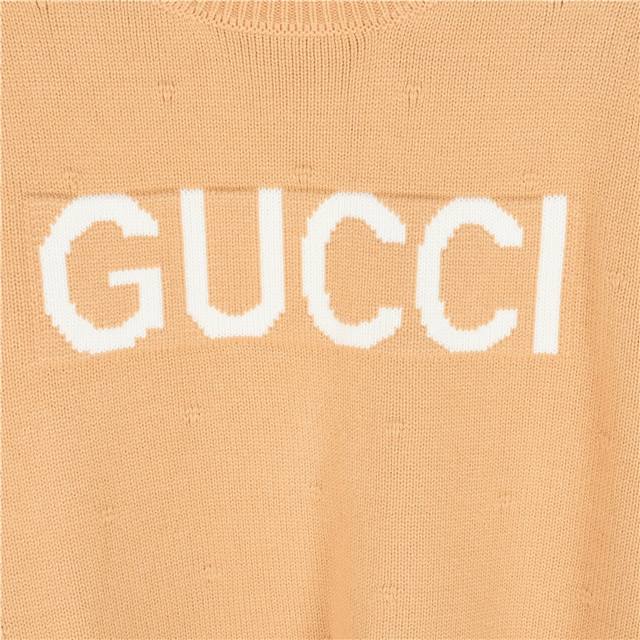 Gucci 24Fw Heavy-duty Polka Dot and Logo Jacquard Crew Neck Sweater. The preppy style continues to gain popularity, constantly adding brilliance to Gucci's design aesthetics. In the new collection, the concept of fashion is no longer limited to authentic lifestyles, as evidenced by the inclusion of iconic brand elements and gender-neutral silhouettes. This crew neck sweater is crafted from black and camel wool, adorned with a simple yet sophisticated wool knit fabric featuring a jacquard logo pattern. The oversized, dropped-shoulder design is thick, soft, comfortable, slimming, and versatile. Unisex style with complete brand label! Colors: Black, Khaki. Size : SL.