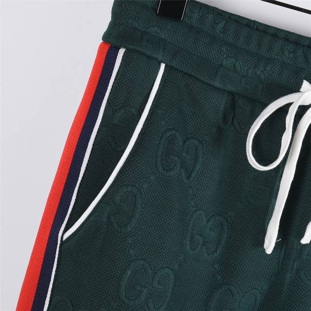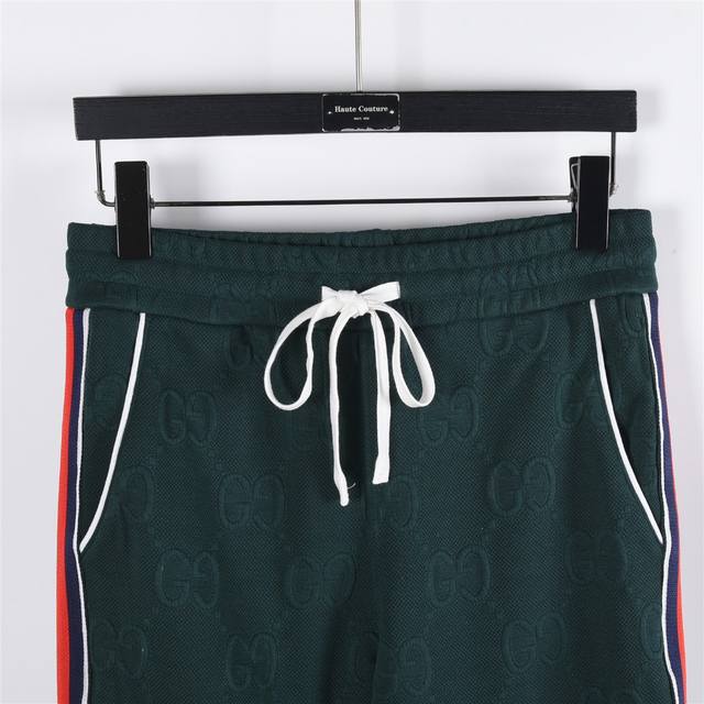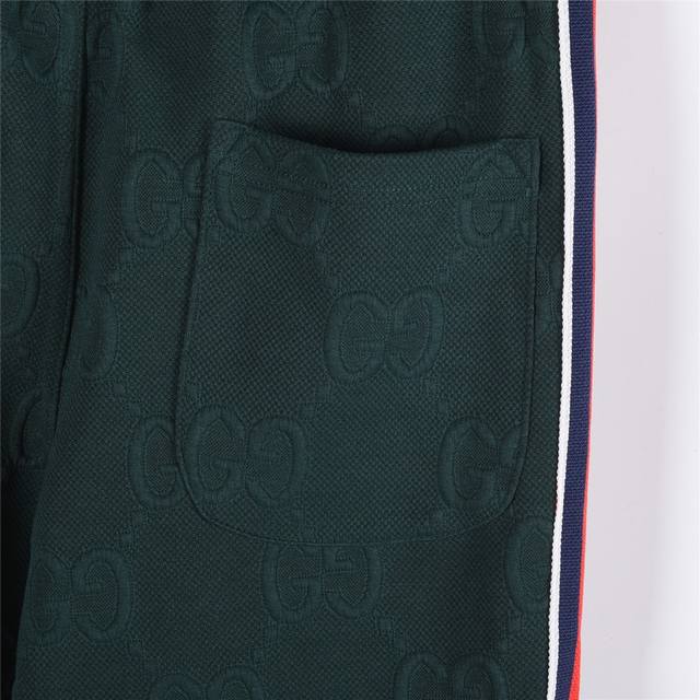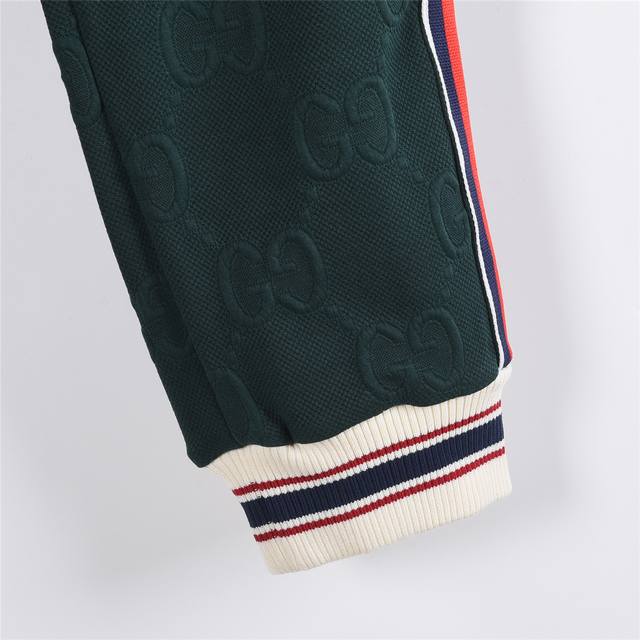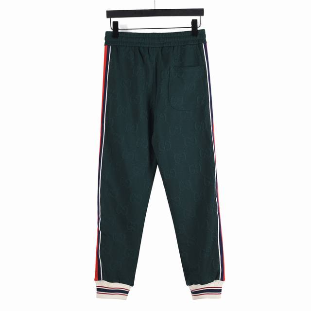 Gucci 25Fw Full-width Double G Jacquard Red and Green Striped Tracksuit Pants. Made with high-quality fabric and exquisite workmanship, these pants feature practical and stylish side pockets. The drawstring elastic waistband allows for adjustable fit, ensuring a comfortable wearing experience. Side pockets and a back pocket add to their practicality. The overall loose fit is comfortable and suitable for everyday casual wear. The classic double G embossed design with red, white, and blue stripes makes it fashionable and versatile. The fabric is a polyester blend, comfortable and breathable. Suitable for all seasons and easy to style. Whether for daily outings, shopping, exercise, or casual occasions like dates, this Gucci couple's set is perfect, offering comfort while showcasing fashionable taste and a sweet, harmonious relationship. Size: Xs-L