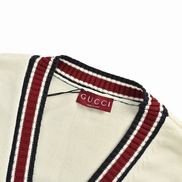Gucci 25Fw rugby jacquard knitted cardigan sweater