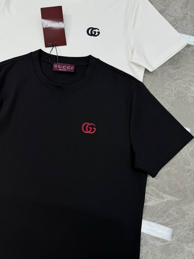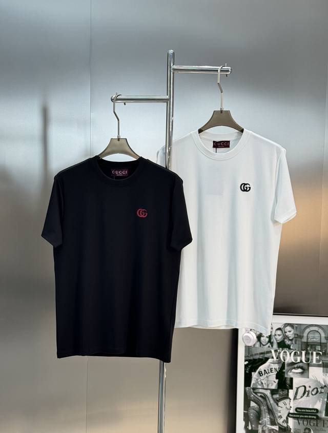 Gucci 25S New Modal T-Shirt. Simple basic style! A minimalist classic that's the highlight of any Gucci look. A classic interpretation of Gucci. Heavy-duty 3D embroidery. Exquisite and high-end! Made of 300g modal cotton. Machine-woven technology gives it a richer texture compared to ordinary fabrics... Comfortable and soft to wear. Regular cut, fits well and is comfortable without being bulky or tight. Recommended by [user name - likely a person who prefers this style]! Colors: Black, White. Sizes: M-3XL. Slim fit! S and 4XL can be custom-made. For someone 175cm tall and weighing 140kg, L or D are recommended.