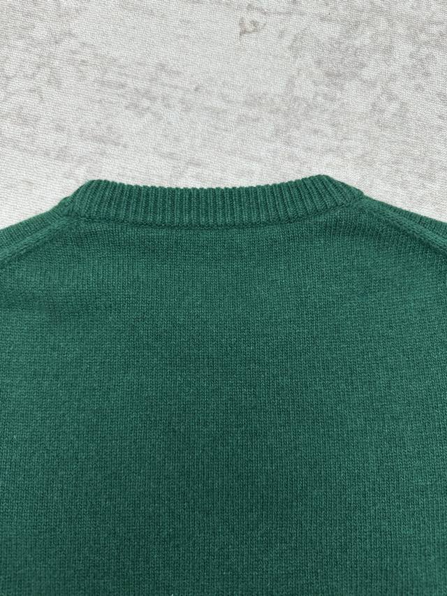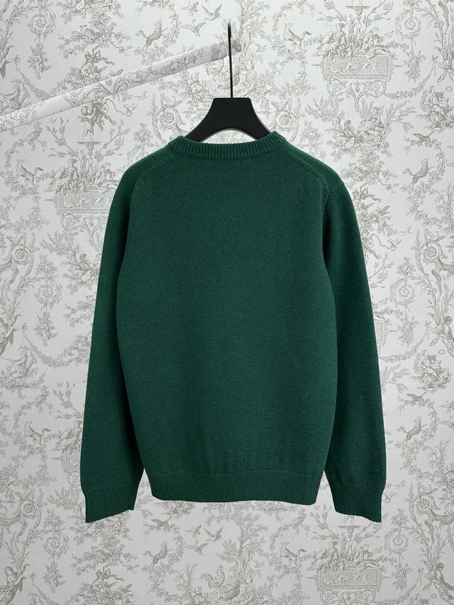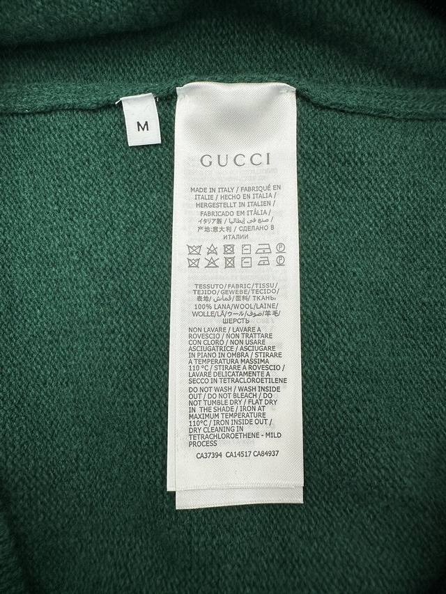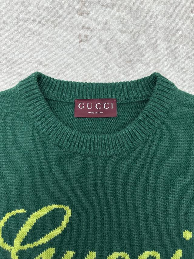 Gucci 25Ss New Intarsia Knit Wool Sweater. A versatile piece crafted from cotton, this sweater features the brand's iconic logo, adding a touch of chic to your wardrobe. This particular sweater is made from deep green knit wool and adorned with a handwritten Gucci logo intarsia, creating a truly captivating piece. Sizes: S, M, L, XL.
