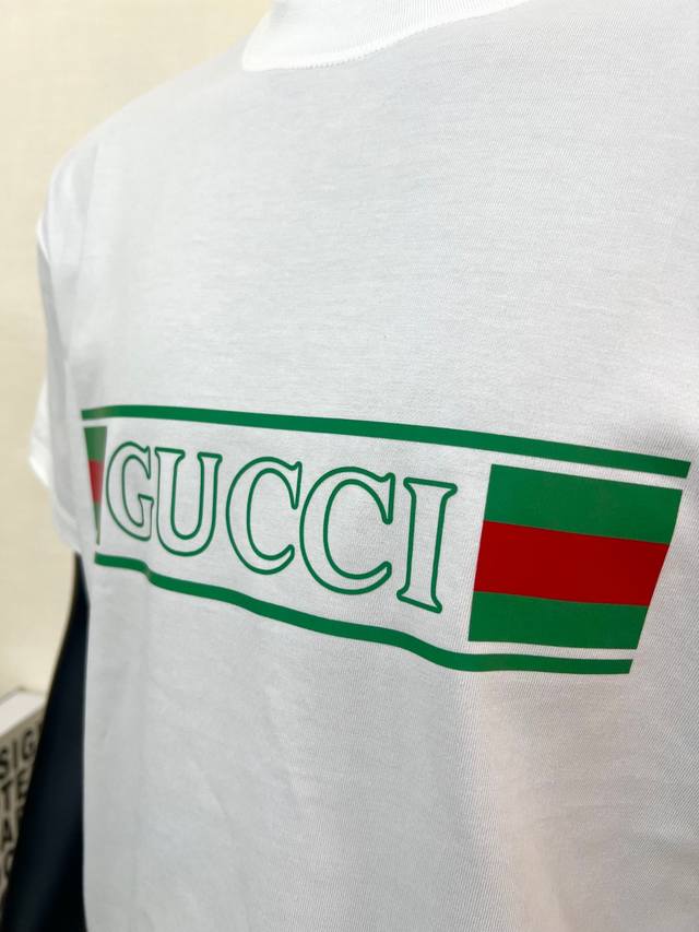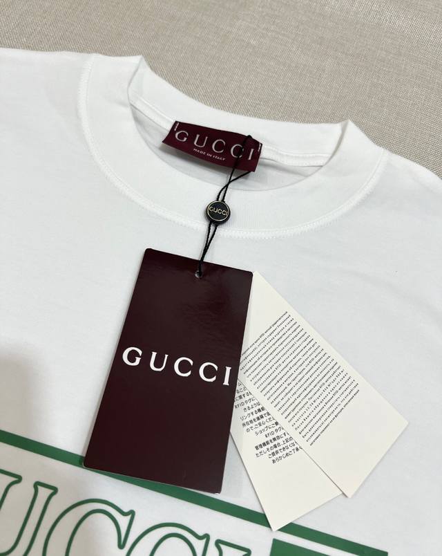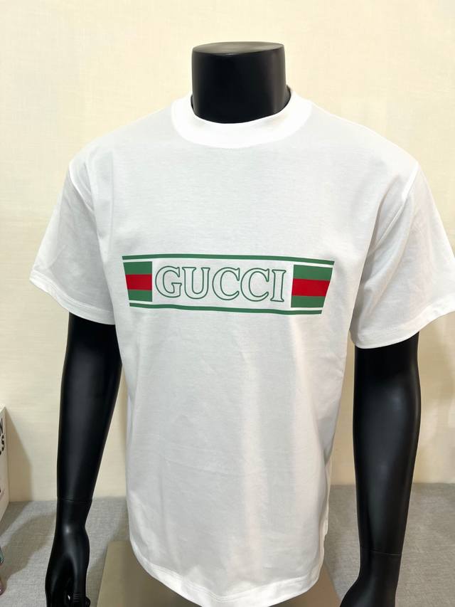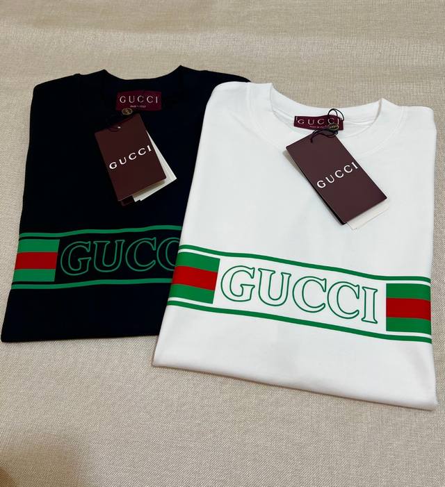 Gucci 25Ss new official website; Logo letter print round neck short sleeve T-shirt, the correct version is consistent with the official website; fabric selection 240G 64 original double yarn pure cotton white transparent label, details in place, soft and breathable fabric without stiffness, three needles with high details, neckline hemming and striping process, ready-made garment washing process, after returning home, it will not be deformed or shrunk after washing, and the three labels are consistent with the official website; color: black and white, size Xs-L