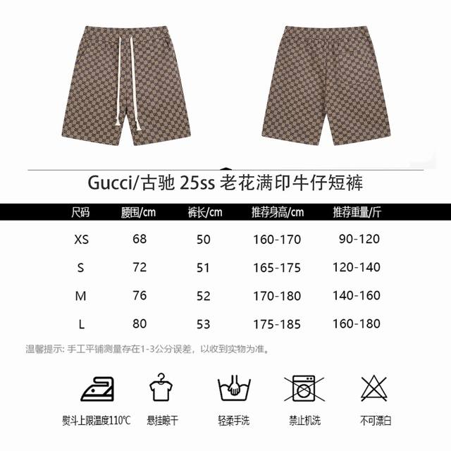 Gucci 25Ss old flower full print denim shorts Gu counter synchronized fabrics ar