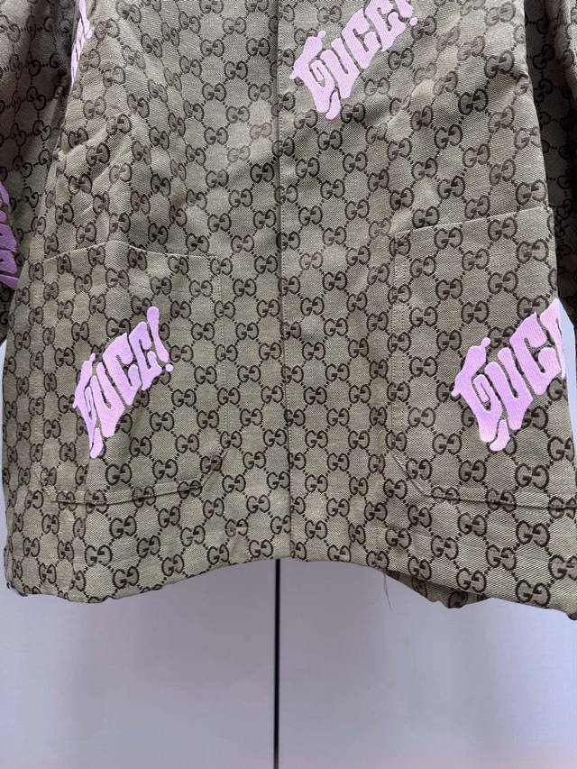 Gucci all-over monogram embroidered lapel jacket.