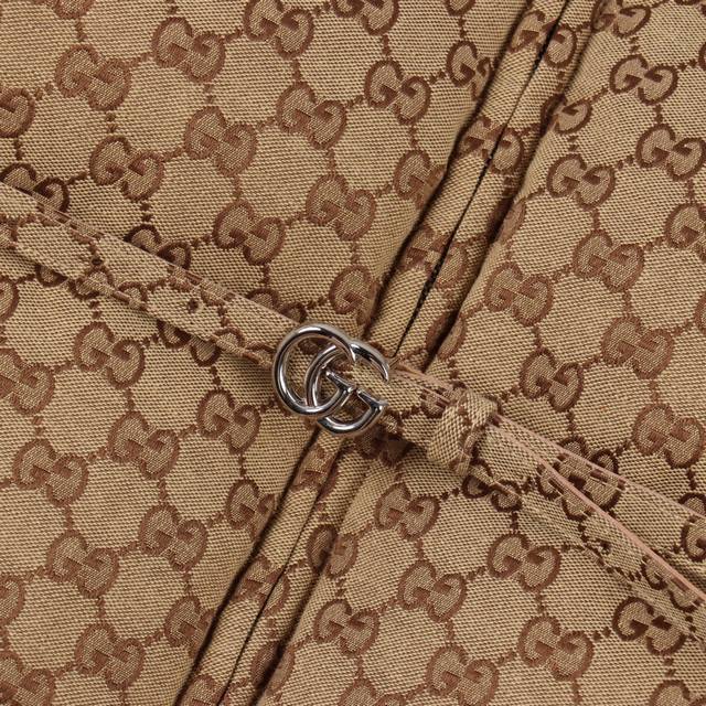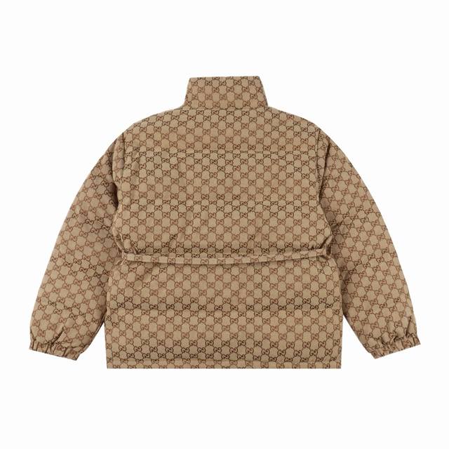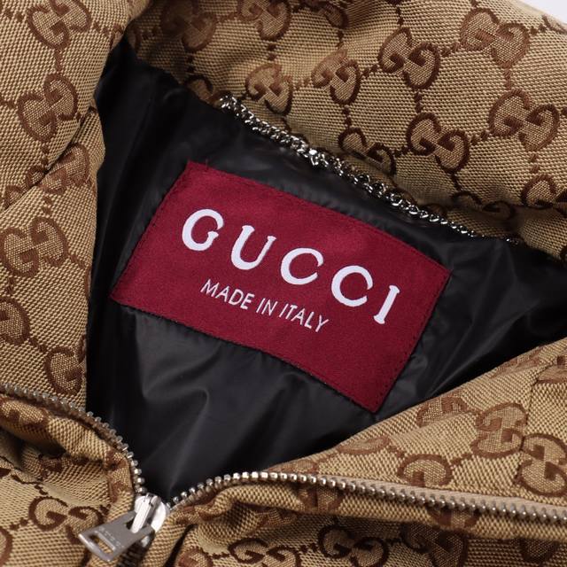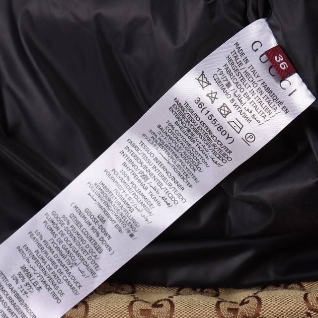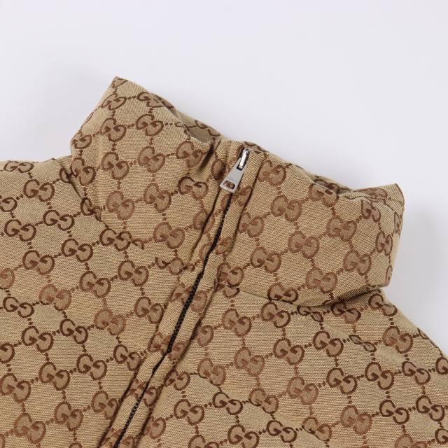 . The iconic double G pattern print is simple yet recognizable, and it exudes a sense of understated luxury. Classic color matching 90% white duck down. The zipper is smooth and unobstructed, and the cuffs and hem are designed to effectively block cold air from entering. Sizes 36, 38, 40, 42,