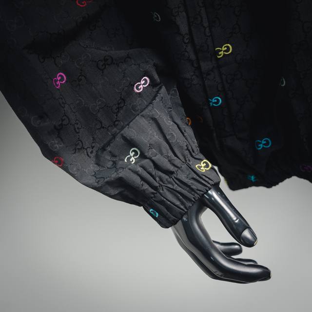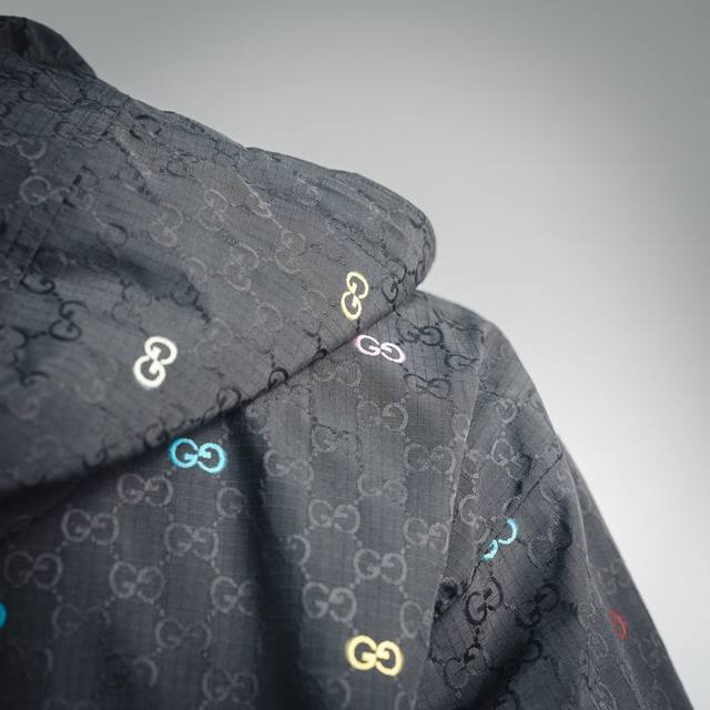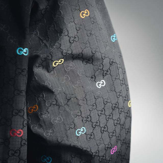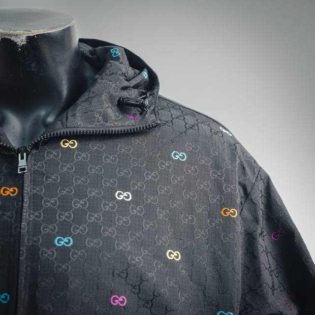 Gucci Colorful Jacquard Canvas Patchwork Hooded Jacket. Originally purchased for 20300. The fabric is 70% nylon and 30% polyester, using imported machine jacquard weaving and a color-blocking process. The entire jacket features vibrant colorful jacquard, with a particularly novel design. The edges are clear, showing no signs of bleeding or fading. Paired with the black base fabric, it's eye-catching without being gaudy, exuding a high-end feel. The fabric is smooth and lightweight, with excellent breathability and windproof properties, making it comfortable and suitable for unpredictable weather. The entire jacket features matching patterns, including the left and right plackets, cuffs, and hem. Hardware and zippers are custom-made. Wide-leg, bomber style. Unisex. Sizes: S, M, L, XL.