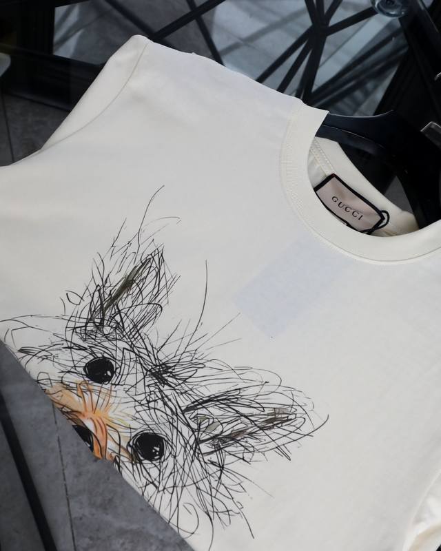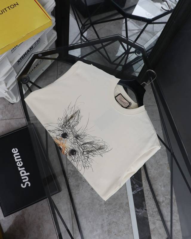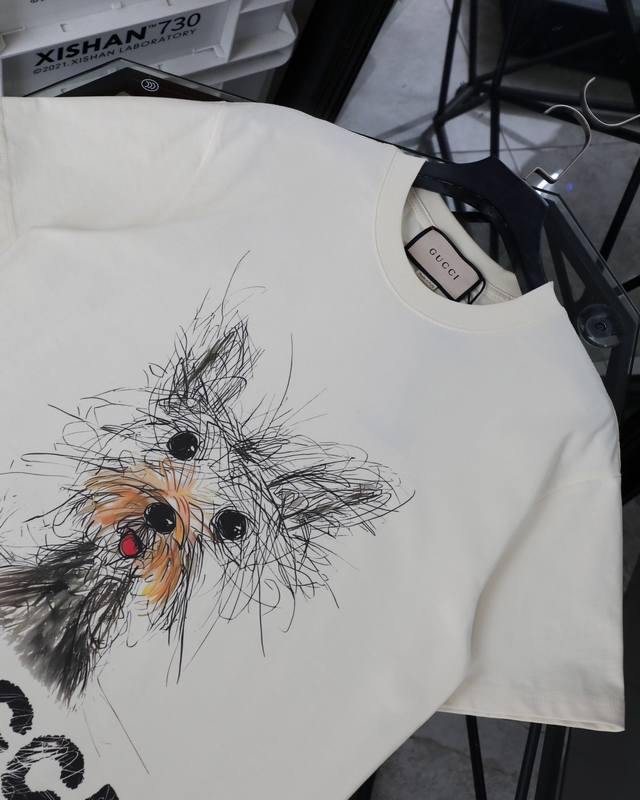 Gucci crayon puppy print round neck short-sleeved T-shirt Style number: 360 Orig