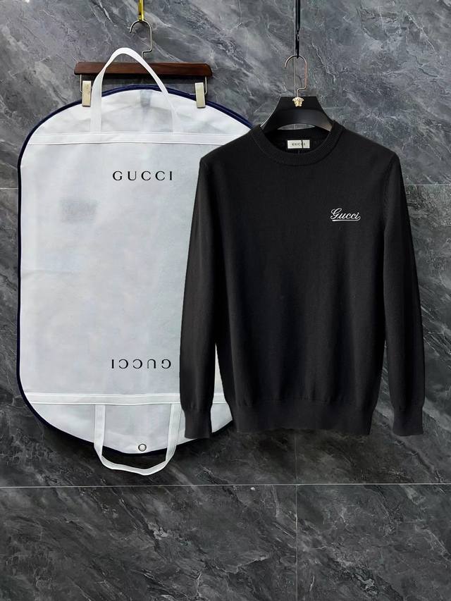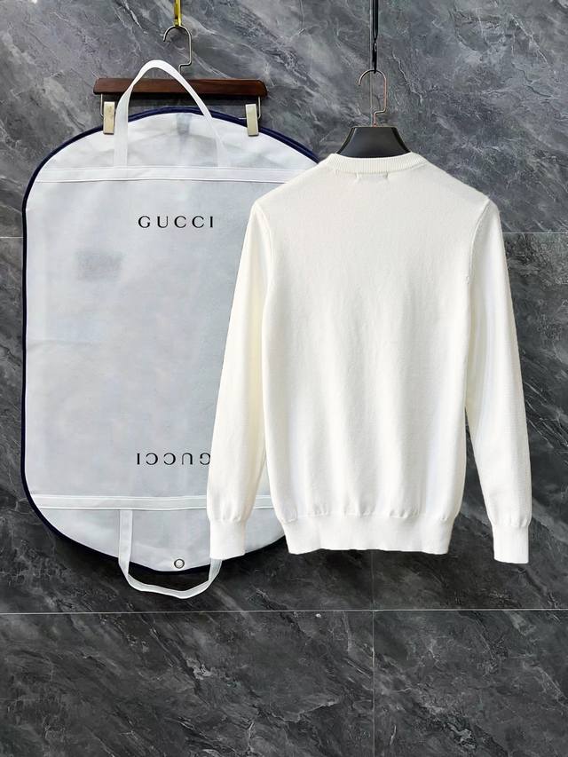 Gucci Crew Neck Sweater with Complete Logos (3 Labels) DDD Premium Wool Blend Sweater for Men and Women, High-End Custom-Made Series. Belongs to the brand's high-end main line, patented top-grade yarn blend. Innovatively interpreting conventional styles, the fabric configuration is revolutionary, with remarkable details. DDD The most anticipated sweater for autumn/winter, full of high-end feel. Designated by the brand's Zhejiang processing factory. High cost-performance ratio. Excellent quality Merries wool yarn, super soft, delicate, and non-pilling and non-deforming. DDD Available in major stores. A must-have item every year. Seemingly simple, but with extremely complex craftsmanship. Suitable for all body types. Extremely skin-friendly and comfortable. Can be worn alone, under a coat, or as an outer layer. DDD Colors: Black, White DDD Sizes: M, L, XL, 2XL, 3XL DDD