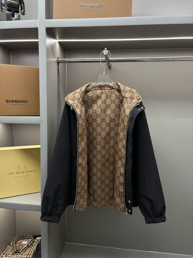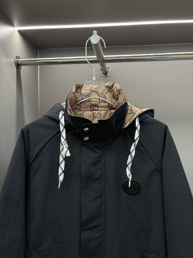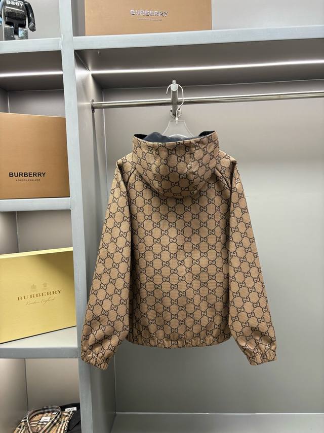 Gucci Double G Webbing All-Logo Jacquard Reversible Jacket, Unisex, In Stock. Made of classic lightweight nylon fabric, it offers a very light and comfortable feel. Soft and comfortable against the skin, with excellent breathability. Craftsmanship: All-over double G monogram jacquard embellishment, subtle jacquard pattern, understated luxury. Accessories: Custom zipper, hardware with logo engraving, double-layer construction, inner lining for comfortable movement. Fit: Regular jacket fit, elastic hem, elastic cuffs. Sizes: M, L, XL, XXL, XXXL.