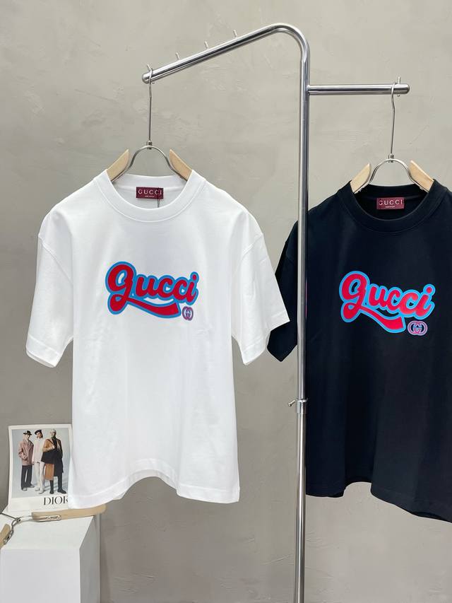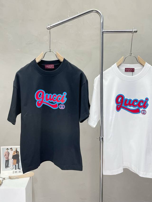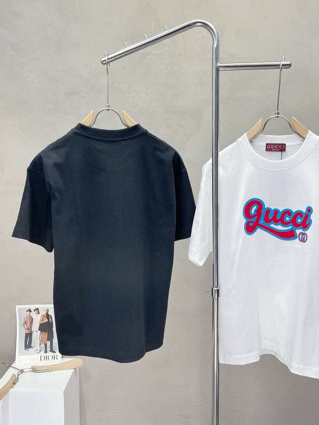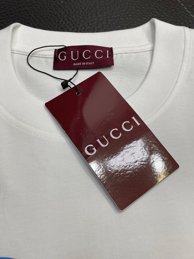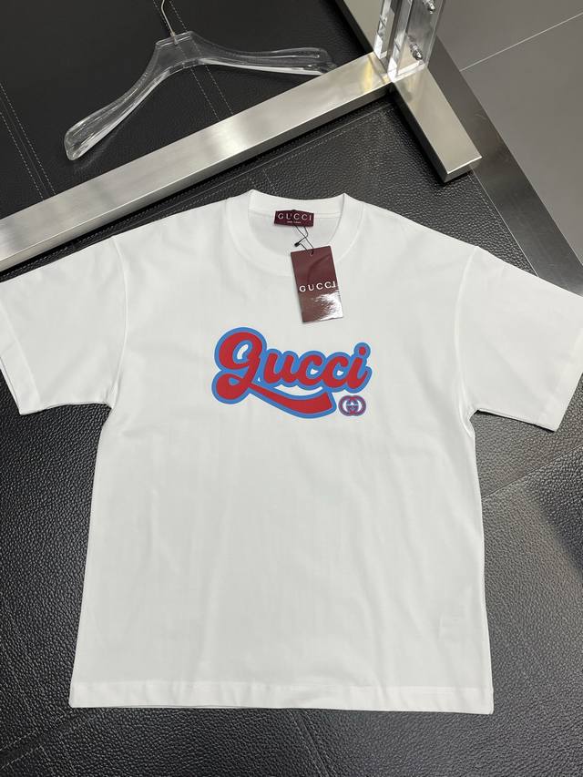 Gucci exclusive supply of new original men's casual spring and summer short-sleeved high-end customization high-end version fashionable and versatile popular imported fabrics feel super soft and delicate to wear skin-friendly and comfortable high-end boutique OEM P fine workmanship upper body is very good men's must-have single item three labels complete size S-2Xl