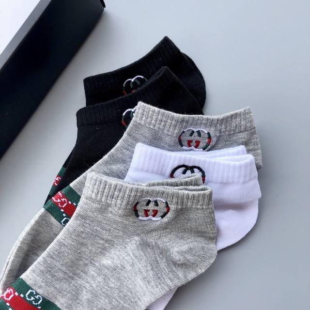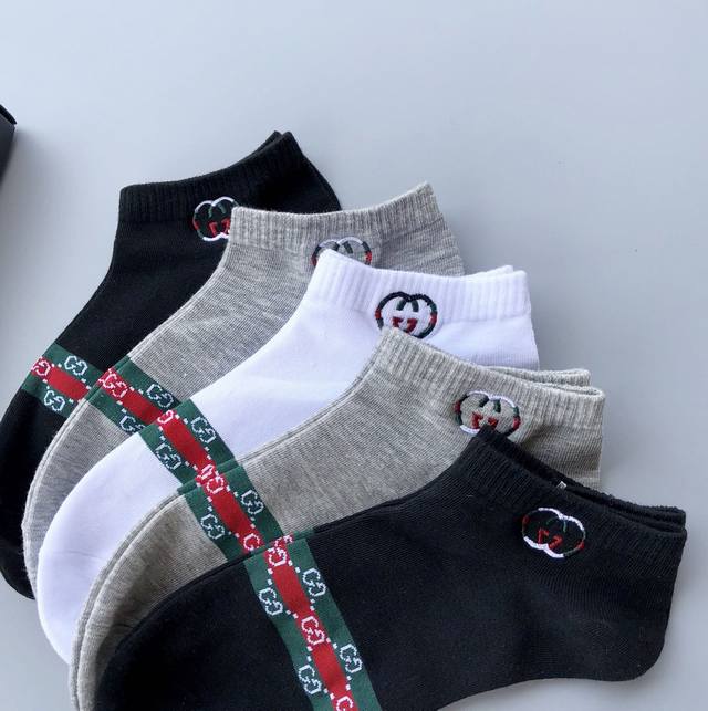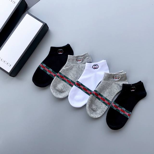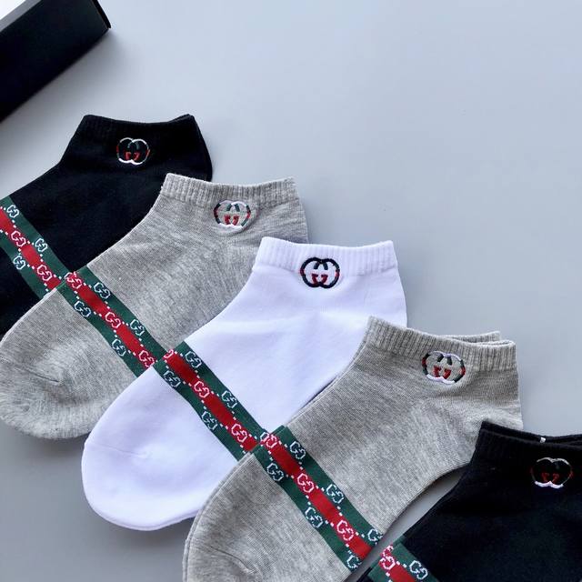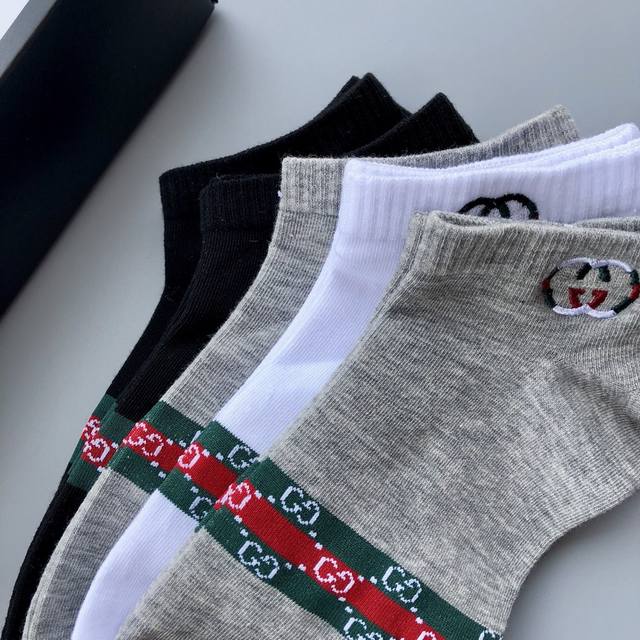 Gucci exquisite embroidered logo men's stockings, a must-have for spring, summer, autumn and winter. Orders shipped directly from the store; quality guaranteed. Excellent elasticity from the cotton blend; very comfortable to wear. Best quality and value compared to department store items. Recommended for all seasons. Great feel, sweat-absorbent, breathable, and super comfortable. 5 pairs per box. Note: Underwear and socks are non-refundable and non-exchangeable.
