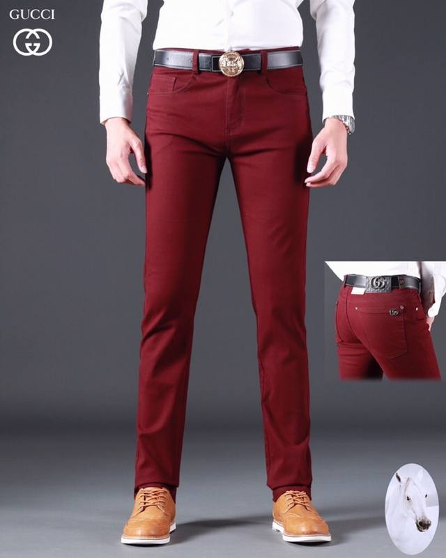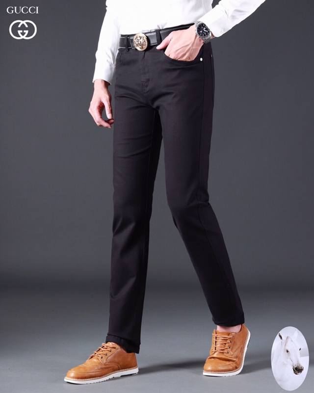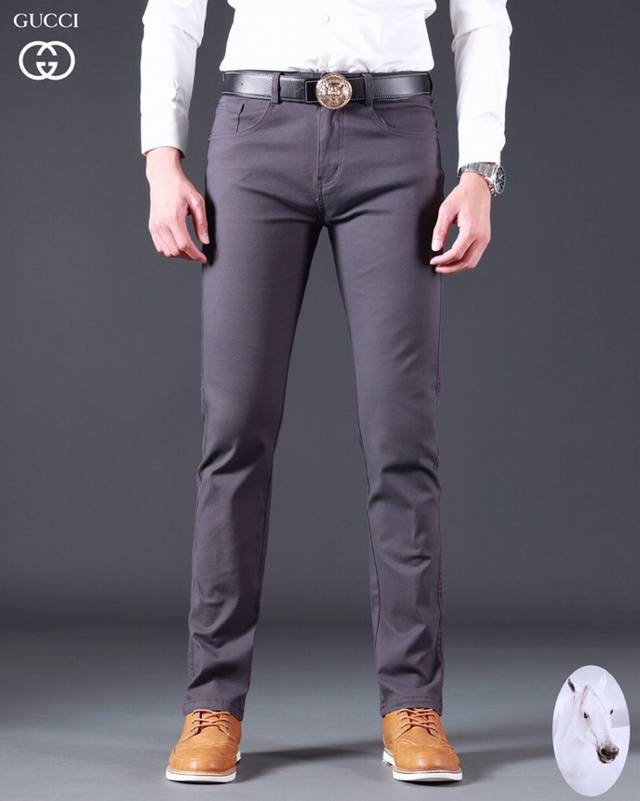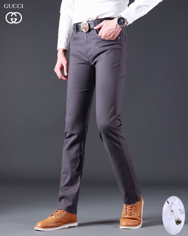 Gucci Fall/Winter 2670 New Arrival. These are high-quality casual trousers from the boutique, perfect for any occasion. A best-selling item, they offer a blend of taste and value. Extremely comfortable to wear, understated yet luxurious, they exude class. The style and cut speak for themselves; they look exquisite on. Made with top-quality Turkish cotton, these are truly luxurious casual trousers. The superior quality is achieved through heavy washing, making them incredibly soft. The straight-leg cut is flattering and flattering on all body types. Sizes: 28-42.