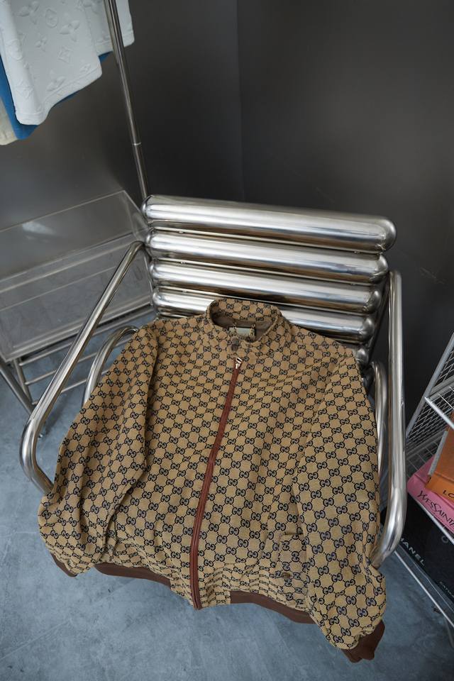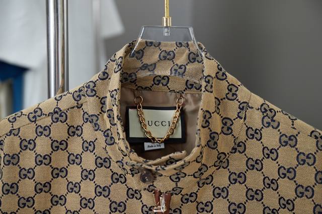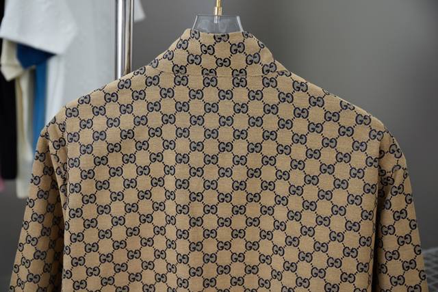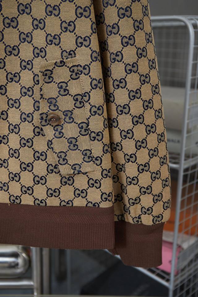 Gucci Gc Navy Blue Jacquard Stand Collar Jacket Ddd A must-have item for everyday commuting in the light luxury style for men and women. Correct version for comparison Ddd Detailed features Ddd High-density cotton canvas, dyed in navy and ebony colors, then made with full double G jacquard process Ddd Dought-dye dark brown yarn with delicate and stylish ribbing Ddd Infrared positioning and cutting, all grids are aligned Ddd Custom-made paperclip zipper pulls consistent with the original Ddd Custom-made toggle buttons Ddd Placket made of original imported cowhide material Ddd Custom-made original hardware chain Ddd Purely hand-stitched red thread main label Ddd Original main label, wash tag, buttons, packaging Ddd Color: As pictured Ddd Size: SML Ddd