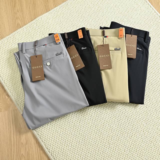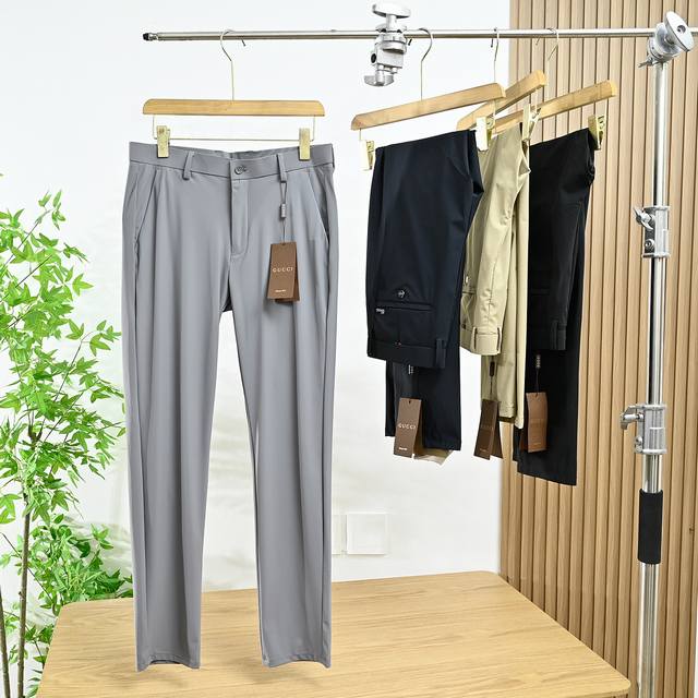 Gucci Gold-Stamped Logo Milk Silk Four-Way Stretch Men's Trousers DDD Men's Business Casual Trousers, Top-Quality Export Goods, Suitable for Both Business and Casual Wear, Simple and Stylish, with a Crisp and Stylish Fit. The fabric is made of customer-supplied milk silk four-way stretch fabric, which is extremely stretchy, comfortable, and environmentally friendly, giving you peace of mind! DDD Features a Gucci gold-stamped logo nameplate on the back pocket. DDD Versatile and easy to match with any color, timeless and stylish, with an extremely smooth and perfect silhouette. The milk silk fabric undergoes a special process, making it wrinkle-free, anti-static, and lint-free. A must-have item for summer. Ddd Colors: Gray, Navy Blue, Khaki, Black Ddd Sizes: Specifications Waist Hip Length Ddd 29 2.2 ft 73.3 95.5 102 Ddd 30 2.3 ft 76.6 98 102 Ddd 31 2.4 ft 80 100.5 102 Ddd 32 2.5 ft 83.3 103 104 Ddd 33 2.6 ft 86.6 105.5 104 Ddd 34 2.7 ft 90 108 104 Ddd 35 2.8 ft 93.3 111 104 Ddd 36 2.9 ft 96.6 114 106 Ddd 38 3.0 ft 100 117 106 Ddd 40 3.1 ft 103 120 106 Ddd 423.2 ft 106 123 108 Ddd Warm reminder: This is a manual measurement, so there may be a 1-2 cm error! DDD