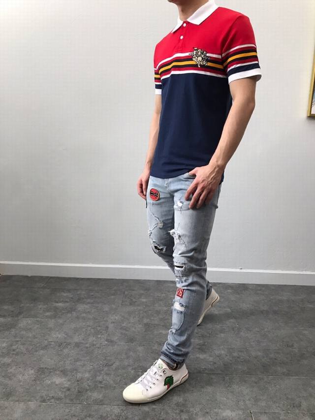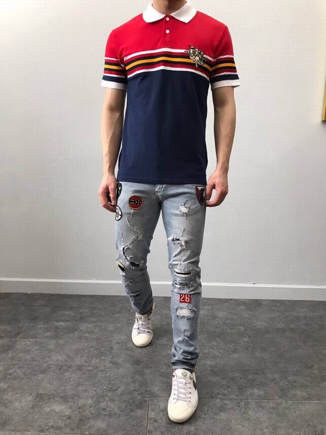 G*Ucci Gucci 2670Ss Spring/Summer Newest Men's Polo Short-Sleeve T-Shirt! Brand new imported 100-count Pima cotton with imported mercerizing process, smooth, comfortable, and breathable to the touch. The three-dimensional cut provides an excellent fit; a must-have item for stylish men! Sizes: M-2XL. Please provide your height and weight when ordering.