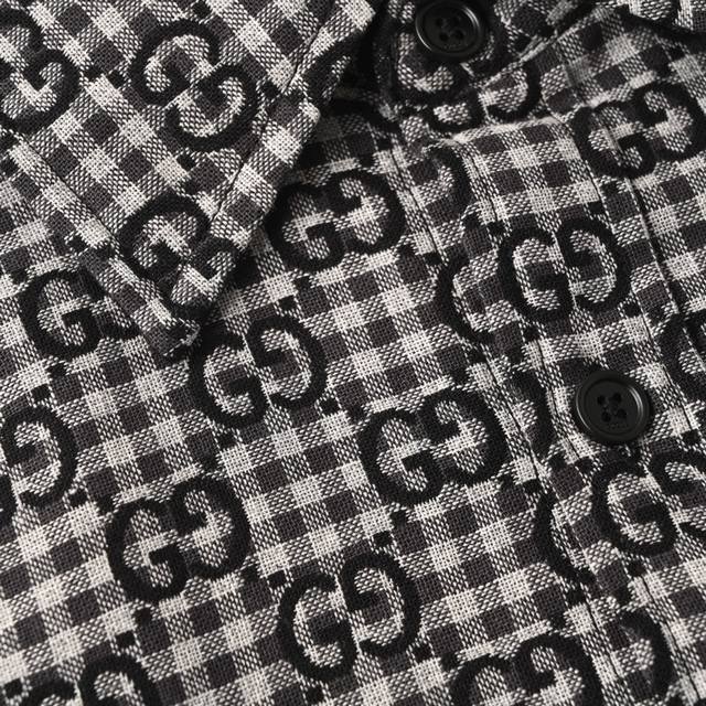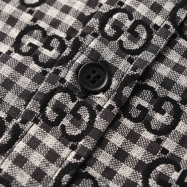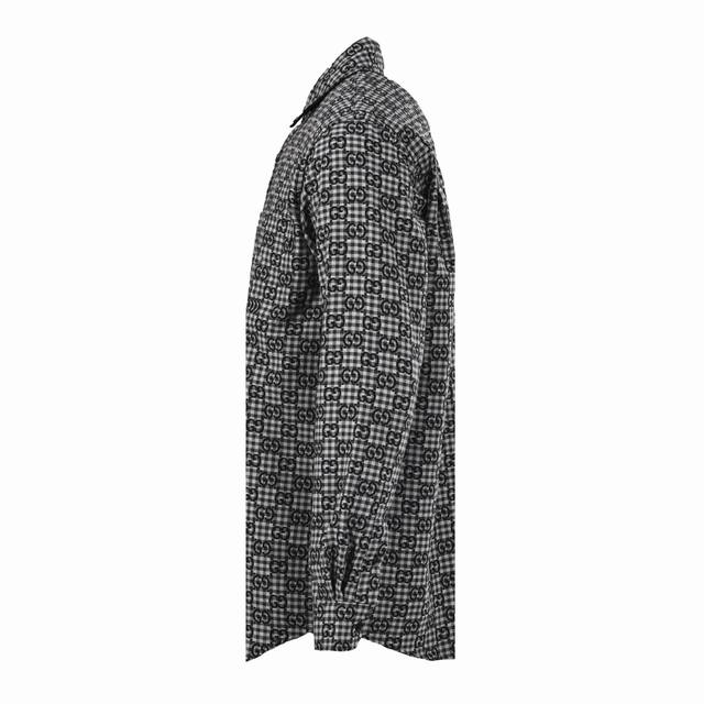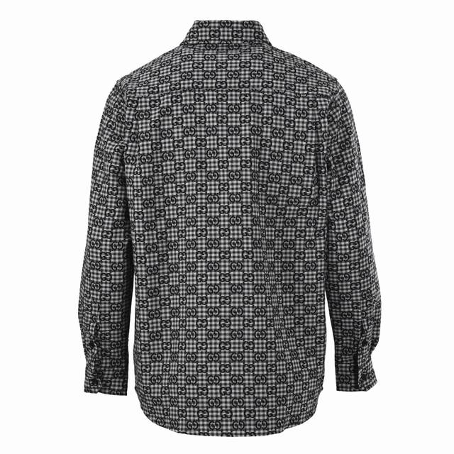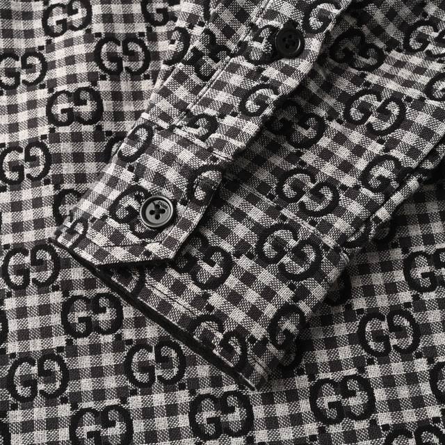 Gucci Gucci Full-width Jacquard Check Long-sleeved Shirt (Ddd) Custom Gg check cotton-wool blend jacquard fabric. The jacquard weave technique creates a full-width Gg jacquard pattern on the fabric surface, giving it a more three-dimensional look. Infrared positioning cutting bed achieves micron-level precision, ensuring high-precision cutting with accurate alignment. Template machine opening ensures high-quality opening. Loose fit (Ddd) Sizes: 42 44 46 48 (DDD)