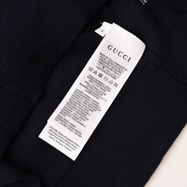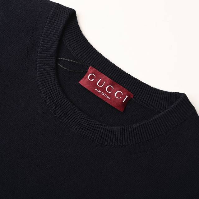 Gucci Gucci Round Neck Sweater with Intarsia Hem. Made of luxurious silk-cotton knit fabric, featuring an intarsia jacquard weave. The fine weave ensures not only pattern clarity but also significantly enhances fabric durability. Three-dimensional stitching at the seams creates a more three-dimensional and body-hugging effect. The intricate workmanship includes machine finishing stitches and a jacquard edge. The prominent pattern created through specific weaving techniques adds a clean and orderly visual effect. Custom-made accessories and a fitted silhouette. Size: S-XL.