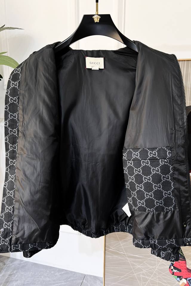 Gucci high-end autumn/winter new fashionable hooded jacket, men's latest casual custom jacquard fabric for warmth! Rarely available through trading company channels, simultaneously released on the official website. This autumn/winter new style offers men a comfortable, fashionable, and high-quality choice with its exquisite craftsmanship and unique design! This jacket is not only fashionable but also practical, made with technical fiber materials and a layered splicing design to create a distinct style! The full and fluffy quilted filling enhances the crispness while ensuring comfort and warmth! It showcases the brand's high-end quality! The stitching is smooth and even, with details revealing meticulous craftsmanship! This jacket has a clean and stylish cut, making it the first choice for discerning men! The hooded design makes the overall look more unique and refined! Whether for casual or formal occasions, this jacket will showcase confidence and personality! Whether paired with dress pants, it exudes a stylish and tasteful masculine style! Whether in the cold winter or the warmth of indoors, this will be an indispensable part of your stylish look. Let's pursue fashion together! M-3XL