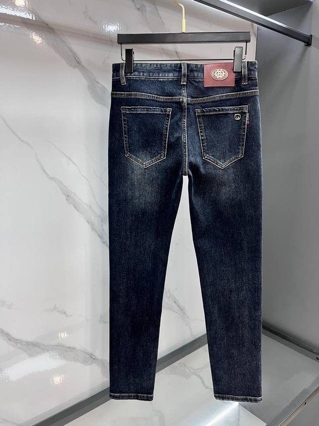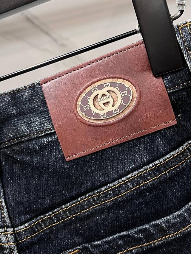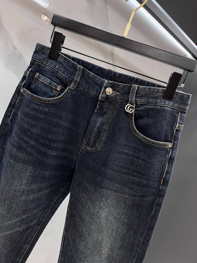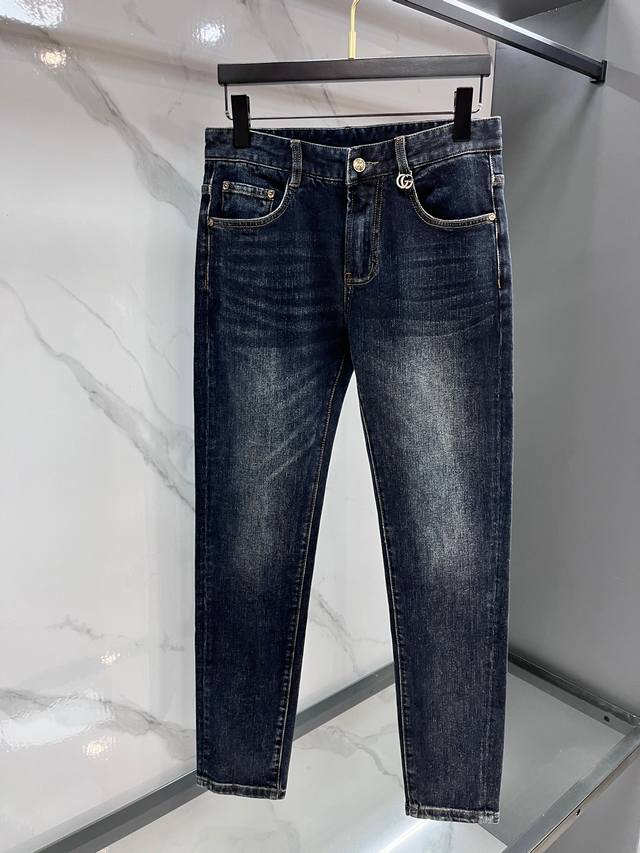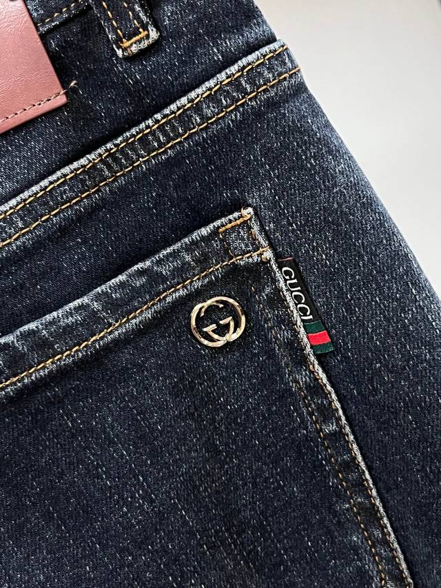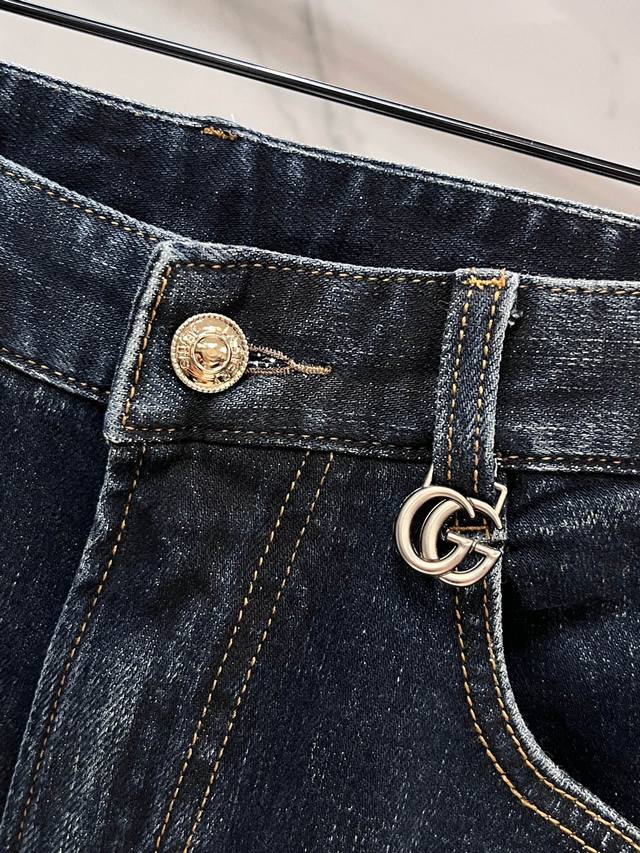 Gucci high-end custom-made 2025 Fall/Winter latest denim jeans, available in stores. Original custom-made, customer-supplied hardware and accessories, original quality imported color-fast denim stretch fabric, heavy washing, exquisite workmanship and stitching, excellent fit! Selected item with all three tags. DDD Size: 29-38 DDD