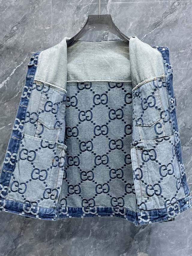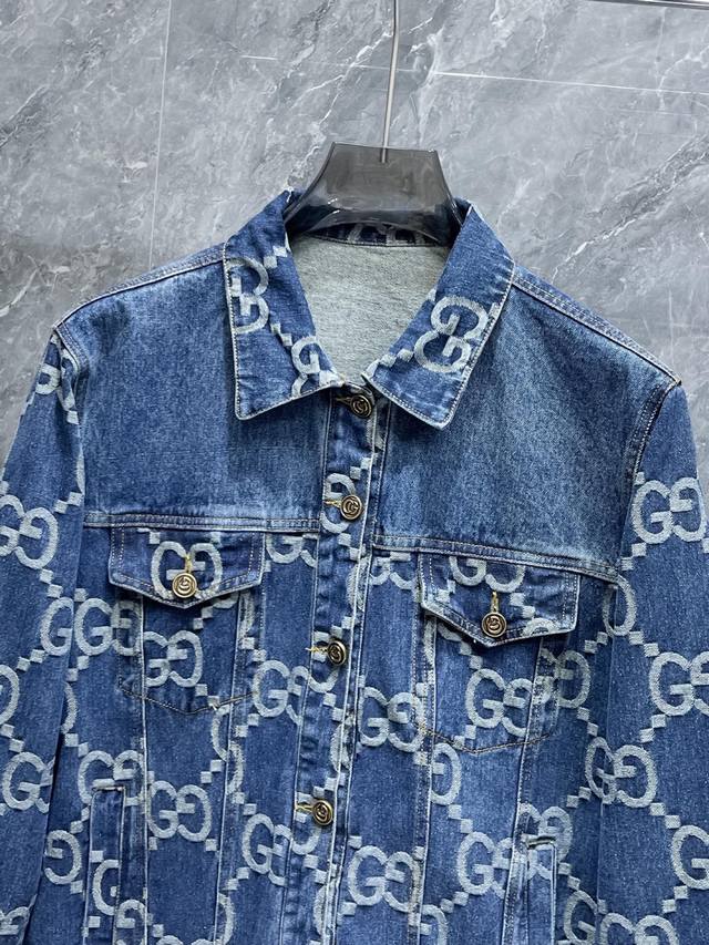 Gucci High-Quality 2025 Spring New Arrival Denim Jacket. A runway new arrival in perfect condition. Comfortable and warm memory fabric, all three tags are complete, rich and alluring color, a truly outstanding design that effortlessly elevates your style. Extremely meticulous and rigorous workmanship, with neat and precise stitching! A masterpiece by a top designer! Not bulky when worn, super stylish! Available sizes: M to XL. Please provide your height and weight when ordering!