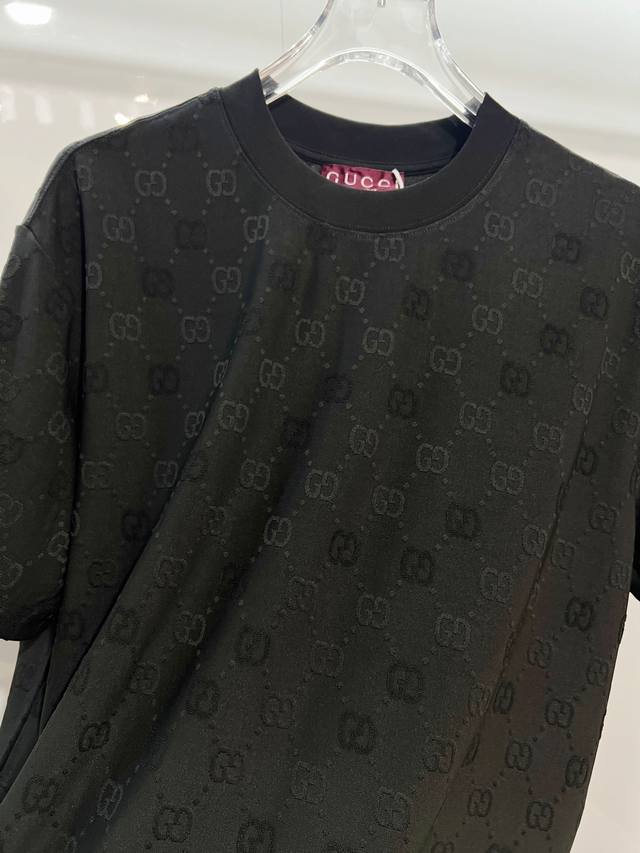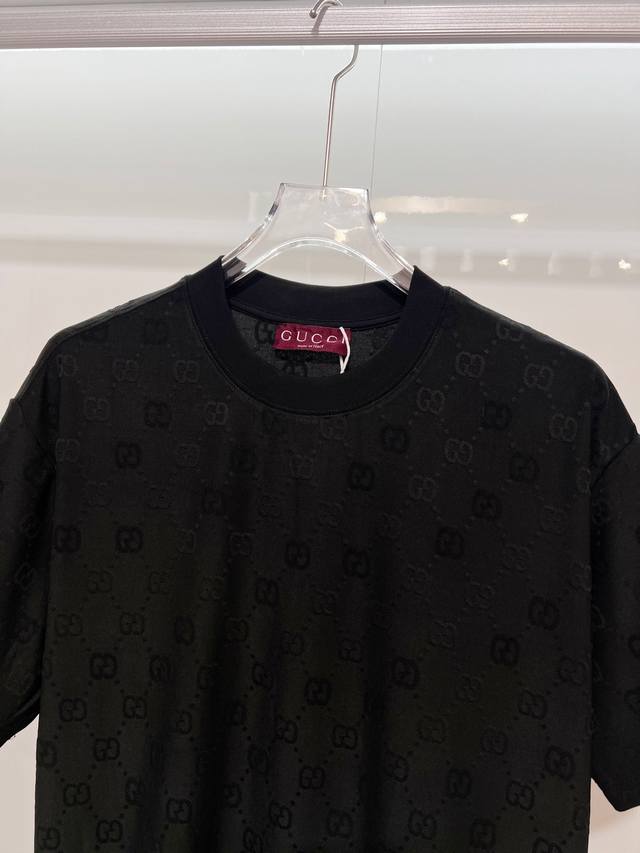 Gucci High-Quality 320g Crew Neck Short Sleeve T-Shirt. Features the brand's classic monogram double G logo printed all over the front and back. 2026 Spring/Summer Official Release, High-Quality Version. Fashionable, Versatile, and Trendy. Made with original fabric and tags. Colors: Black, White. Sizes: S, M, L, XL.