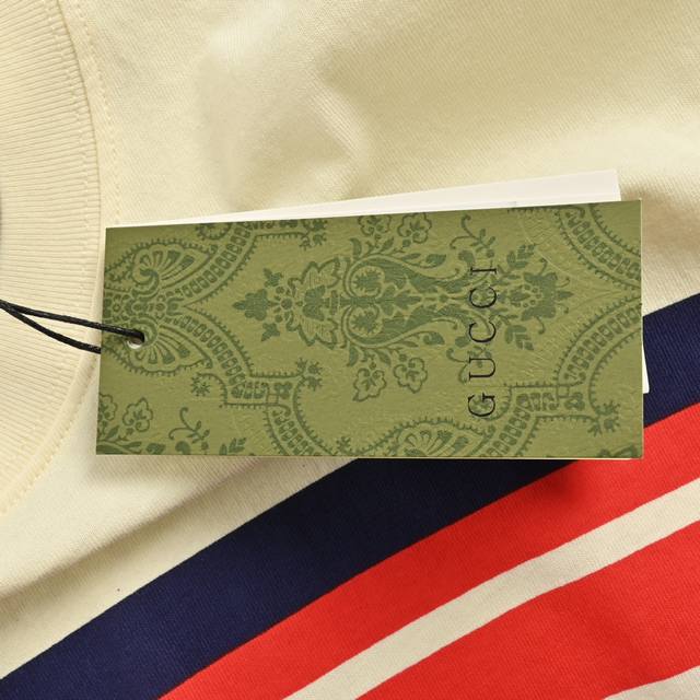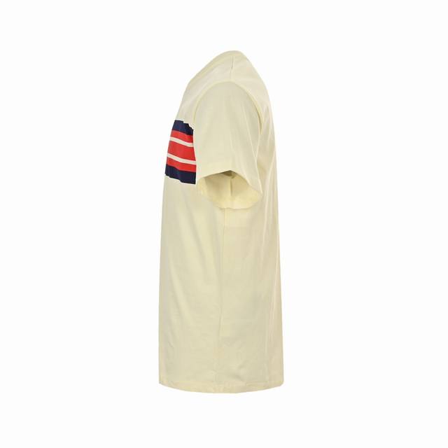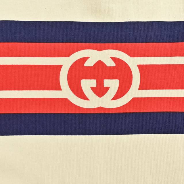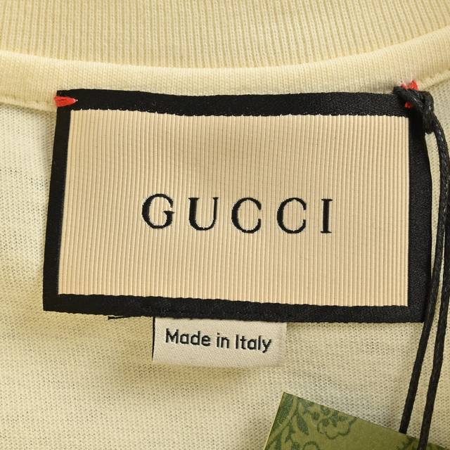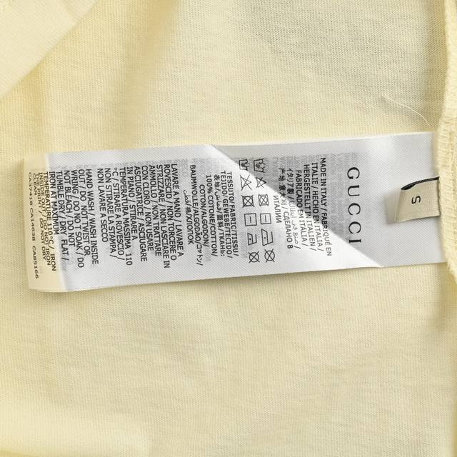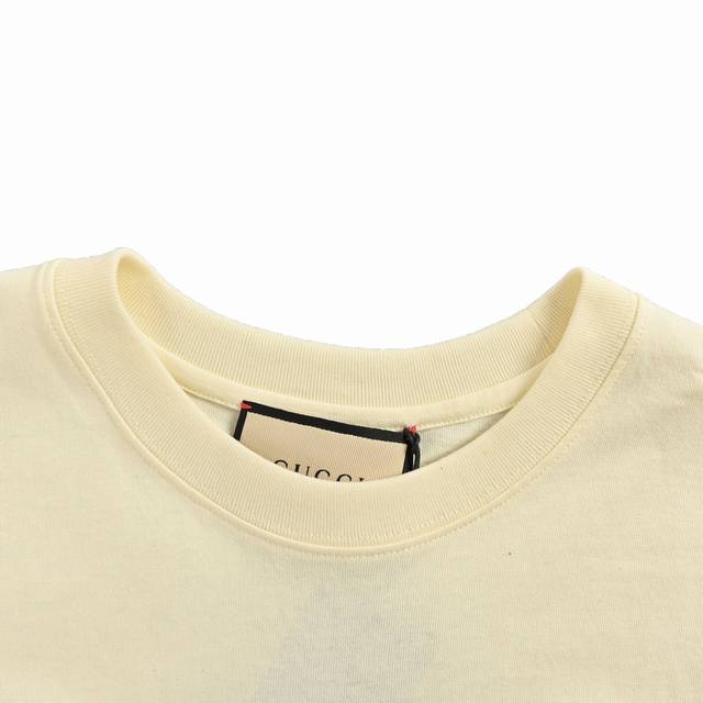 Inspired by prints from the 1980s, this short-sleeved cotton jersey T-shirt cleverly utilizes extended webbing from the Gucci Cosmogonie collection to create a retro-inspired graphic. Made from the same original, custom-made, 240g, single-dye fabric, it's incredibly comfortable. The latest spring/summer update, the OST dropped-shoulder silhouette is stylish and versatile, perfect for both men and women. A must-have item, this piece features a collar and label, washed wheat, and comes with all three labels.