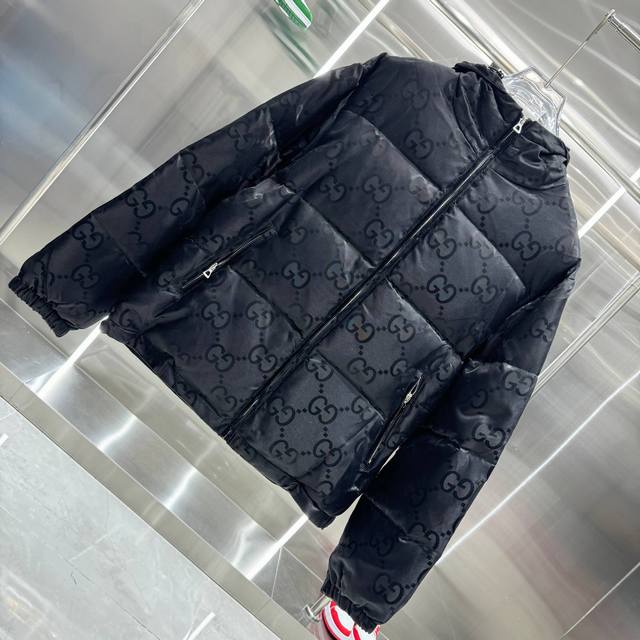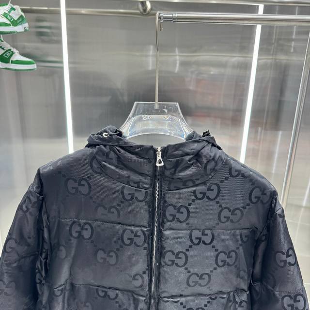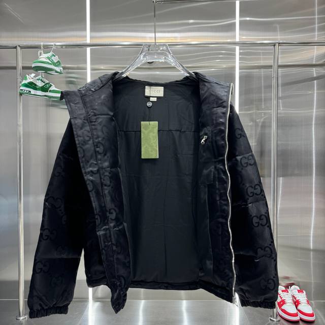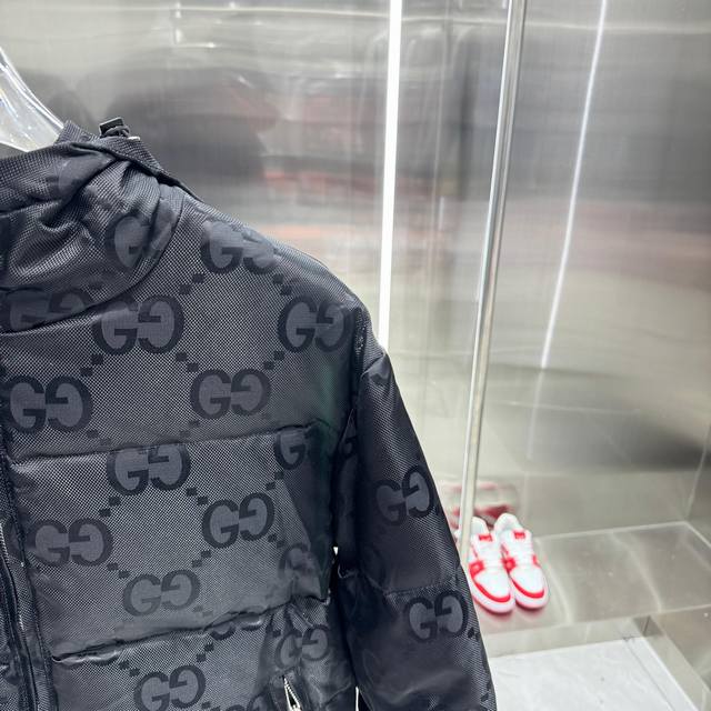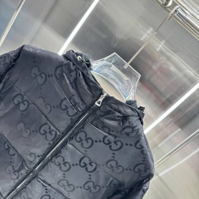 Gucci men's autumn/winter new Black Samurai Hacker Series Double G black Gg logo Jumbo Gg Down Jacket in Black. Counter price: 18210. Original 1:1 custom hardware, fully imported. Customization welcome. Absolutely high quality. Made from premium 90% white duck down, ultra-soft, fluffy, and full. Super heavyweight fabric with impeccable workmanship. Note the fabric's super comfort. This is the first time for men and women to make down jackets. High volume and price: P. Breaking the bank.