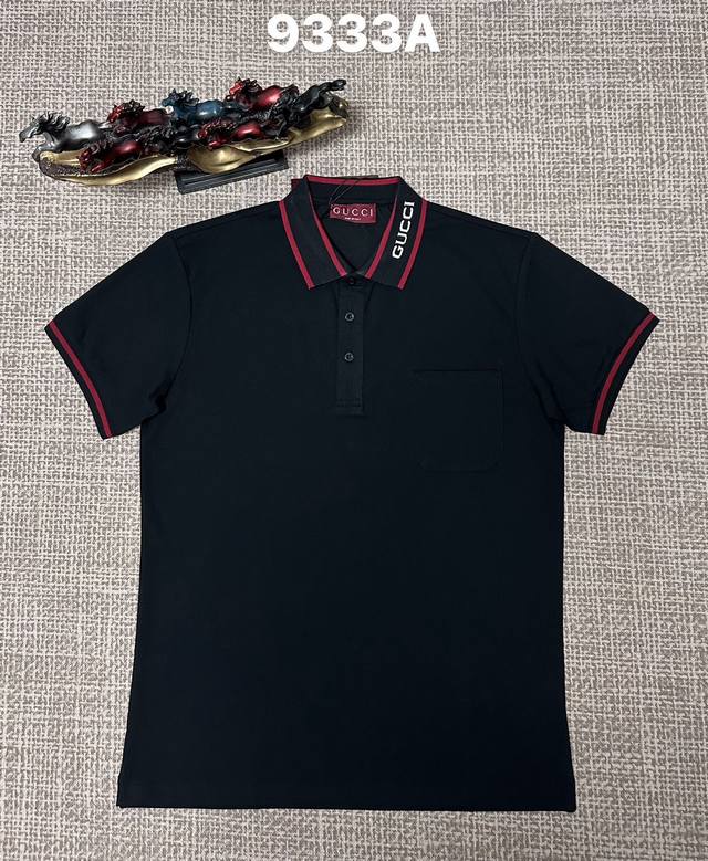 Gucci men's open-chest collar 9333A, pure cotton fabric, jacquard collar, available in black, white, sizes M, L, XL, XL, XXL.