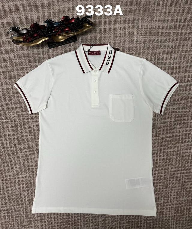/ Gucci men's open-chest collar 9333A, pure cotton fabric, jacquard collar, avail