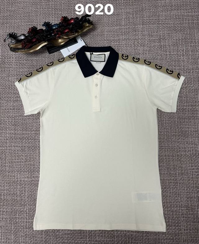 Gucci men's open-chest lapel style, 9020, pure cotton fabric, webbing detailing, black, apricot, sizes M, L, XL, XL, XLXL